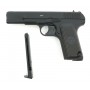 Новинка 2014 года! Пневматическая пластиковая копия знаменитого пистолета ТТ, который был принят на вооружение Красной Армии в 1942 году. Само появление данного пистолета совершило настоящий переворот в системе снабжения и ремонте. Помимо револьвера Наган 1895 года до этого в использовании были пистолеты в основном зарубежных марок различных калибров и систем. Это очень затрудняло полноценное снабжение боеприпасами и организации ремонта. Весь корпус Gletcher TT-P выполнен из прочного полипропилена. Подобная конструкция позволила значительно снизить цену пистолета, однако это не повлияло на стрелковые показатели Gletcher TT-P.
