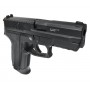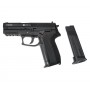 Пневматический пистолет Gunter P2022 (SS SP2022) – это газобаллонная полноразмерная копия боевой модификации германско-швейцарского оружейного концерна Sig Sauer SP2022. Баллончик с диоксидом углерода на 12 г является источником энергии, сообщая боеприпасам начальную скорость в 130 м/с. Баллончик устанавливается в полость рукояти и надежно фиксируется поджимным винтом скрытой конструкции. В качестве боеприпасов выступают ВВ-шарики, емкость магазина – 21 единица. Так как конструкция отличается малым числом подвижных элементов, пистолет прост и надежен в эксплуатации.