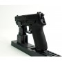 Устройство отличается хорошей эргономичностью, за счет смещения центра тяжести к области рукоятки оружие может использоваться продолжительное время, и при этом рука стрелка не будет уставать. На рукоятке присутствует прорезинена накладка, обеспечивающая удобный захват пистолета. В комплектации – магазин, паспорт с инструкцией, а также шестигранник для установки газонаполненного баллончика.