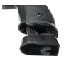 Прорезиненные накладки на рукоять повышают комфорт стрелка и эргономику модели. Весит пистолет 0,42 кг при длине 21 см. На планку под стволом можно установить дополнительные аксессуары – например, фонарик или целеуказатель. Комплектация включает паспорт и полноразмерный магазин.
