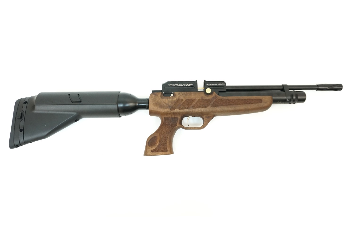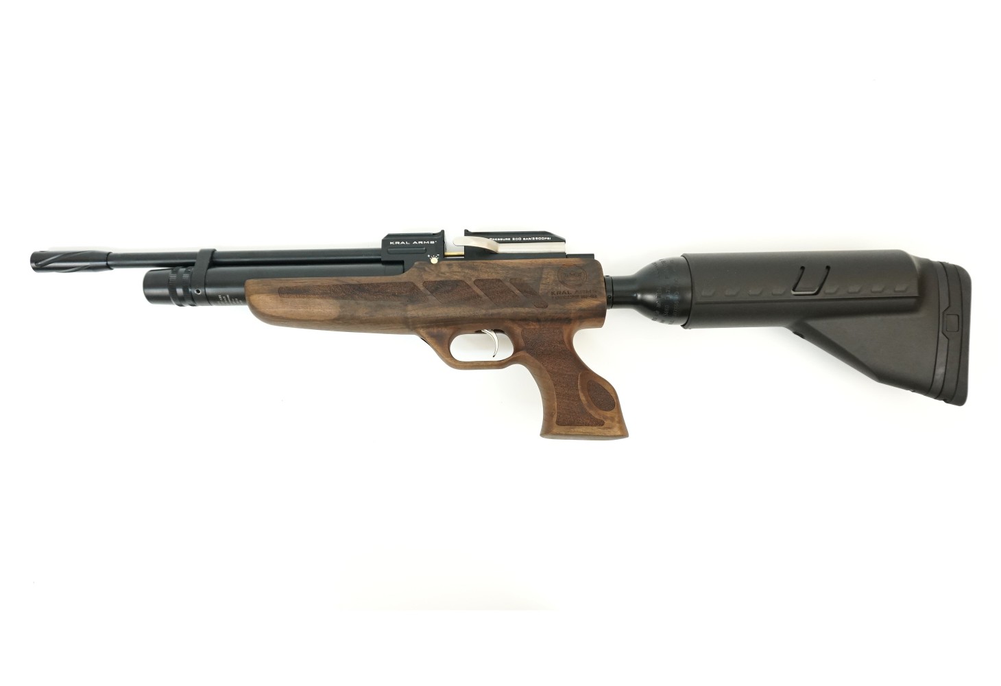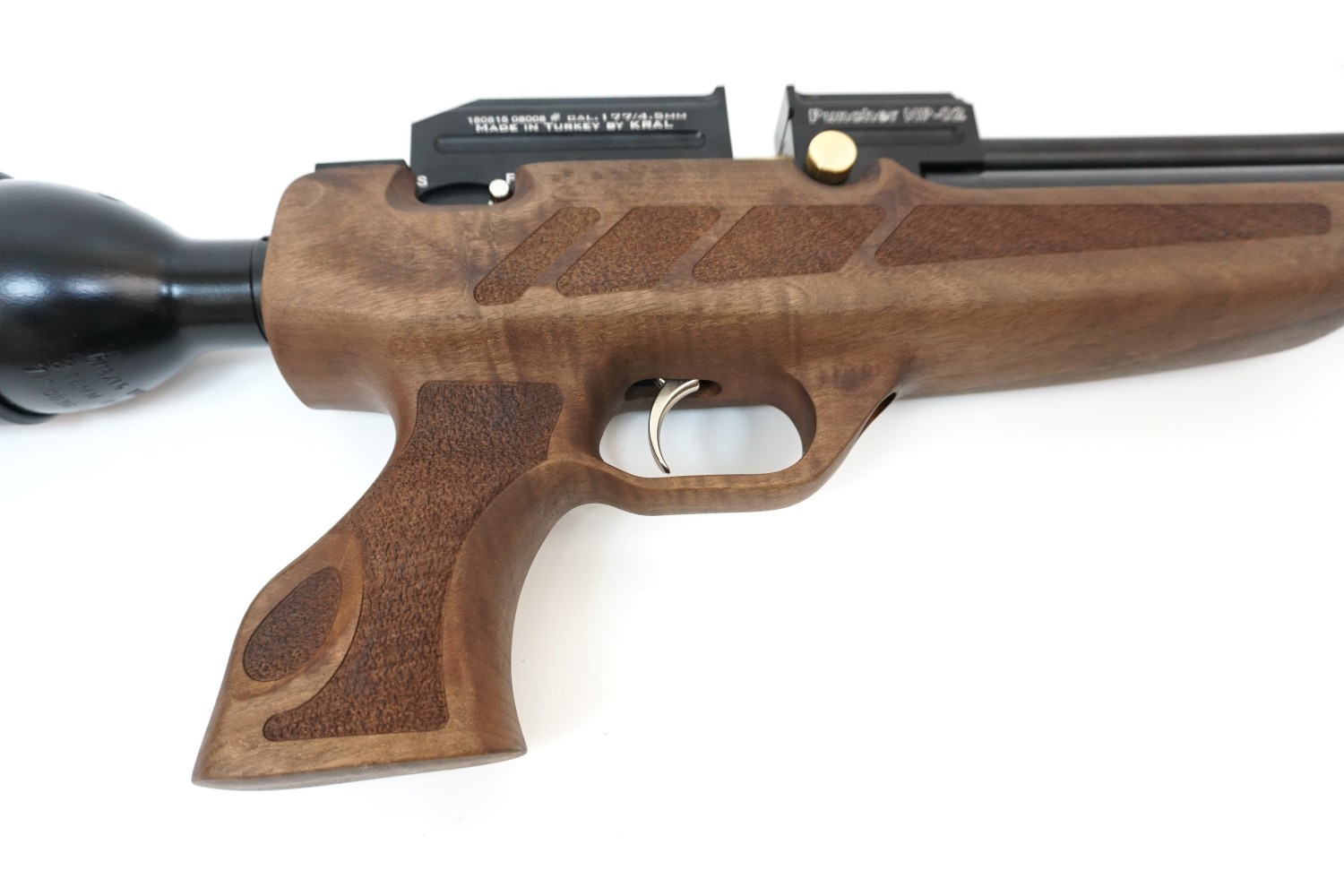 Kral Puncher NP-02 (орех, PCP) наверняка заинтересует опытных стрелков, такая пневматика обеспечит возможность автономной работы длительное время и обладает весьма приличной мощностью.