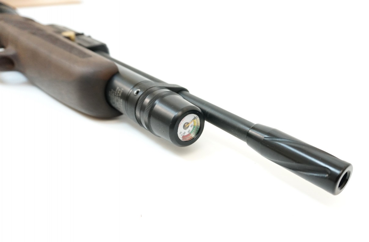 Стрельба возможна только одиночными выстрелами, однако оружие многозарядное. Спусковой механизм регулируемый, ствол нарезной, повышающий кучность выстрелов. Установлен двухпозиционный предохранитель ручного типа. Благодаря встроенному манометру пользователь сможет контролировать давление в резервуарах и своевременно их заполнять.