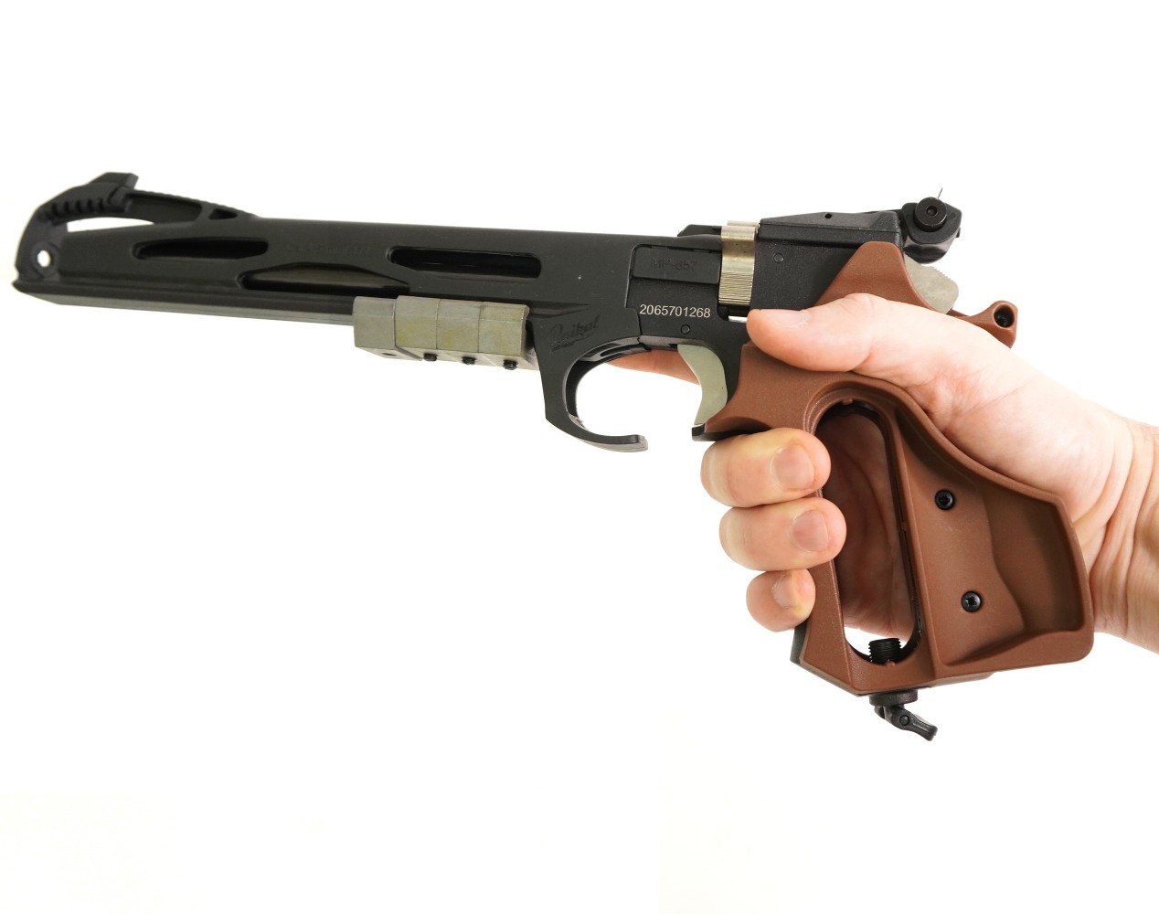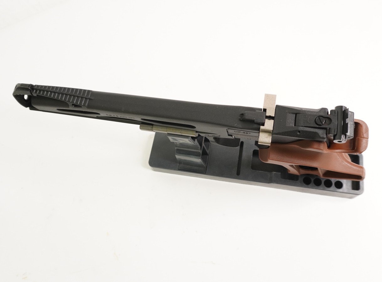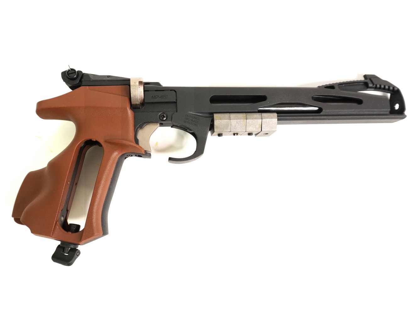 Пневматический пистолет МР-657 – это спортивное оружие на базе известной и популярной у стрелков модификации МР-651. Модель относится к газобаллонной пневматике однозарядного типа, и была разработана для достижения отличных результатов кучности и точности стрельбы. В мире огнестрельных образцов оружия прототипа этого пистолета не существует. От предшественника модель отличается особенным дизайном. Ижевский оружейный завод сегодня является одним из самых крупных предприятий Российского ВПК, и производит более ста базовых модификаций стрелкового, спортивного и охотничьего оружия.