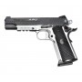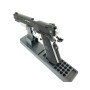 Прицельные приспособления данного образца – это мушка и целик нерегулируемого типа. Под стволом имеется планка для установки оптики или целеуказателя. Ствол гладкий. Внешне пистолет копирует боевого прототип. Есть два предохранителя. Материал – металлический сплав. Длина пистолета 22,1 см, вес 1,18 кг. Модификация комплектуется магазином и инструкцией.