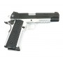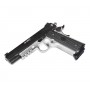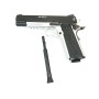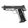 Движущей силой являются стандартные баллончики с углекислотой на 12 г. Интересно, что отсек для баллончика с газом в полости рукоятки оснащен рычагом для ускорения снаряжения оружия. Боеприпасы также стандартные для пневматики такого типа – шарики ВВ 4,5 мм. Магазин пистолета рассчитан на 16 боеприпасов. Показатель скорости выстрела достаточно высокий – 125 м/с. УСМ одиночного действия, стреляет Зиг Зауер 1911 Макс Митчел в полуавтоматическом режиме.