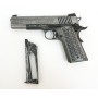 Корпус изделия выполнен из металла черно-серого цвета, с гравировкой на английском «Мы люди.1911», на рукоятной накладке из алюминия выбиты звезды, как на государственном флаге США, поэтому дизайн пистолета нередко американские пользователи называют «патриотичным».