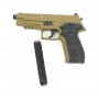 Источник энергии – баллончик с углекислым газом, устанавливаемый в отдельный отсек в полости рукоятки. Начальная скорость выстрела 155 м/с, работа системы блоубэк позволяет повысить реалистичность выстрелов. Мощность пистолета не выше 3 Дж, его без проблем может купить каждый, кто достиг 18 лет.