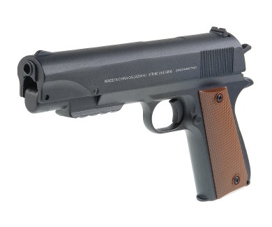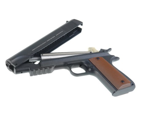 Пневматический пистолет Strike One B016 – это надежное и мощное однозарядное оружие, разработка компрессионного типа, не имеющая боевого аналога. Главной особенностью пистолета является отсутствие необходимости покупать баллончики с углекислотой – давление воздуха, необходимое для движения боеприпасов, нагнетается встроенным насосом. В качестве боеприпасов выступают свинцовые пули калибра 4,5 мм.