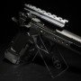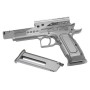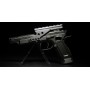 Пневматический модель пистолета Swiss Arms Tanfoglio Gold Custom Eric - это утяжелённый ствол, оснащенный интегрированным компенсатором, а также дополнительным дульным 2-х камерным компенсатором. Его можно держать любой рукой благодаря наличию двухстороннего предохранителя, затворной задержки и перекидной защёлки магазина. В длинной рамке, имеющей парные направляющие, сделаны отверстия для прикрепления кронштейна коллиматорного прицела.