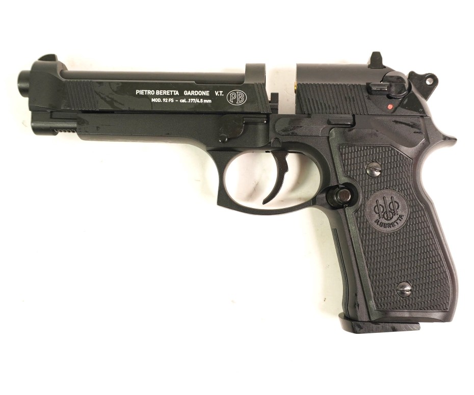 Пневматическая газобаллонная модель пистолета Umarex Beretta 92 FS является одним из достойнейших представителей пневматических пистолетов класса премиум. Это идеальная копия известного итальянского огнестрельного пистолета Beretta М9 (92 FS), который состоит на вооружении армий многих европейских стран и США. Популярность этой модели обусловлена высоким качеством производства, которое характерно для известного немецкого оружейного изготовителя Umarex.