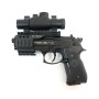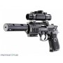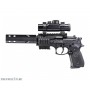 Помимо прицельных устройств пневматический пистолет Beretta M 92 FS XX-Treme обладает коллиматорным прицелом, который очень точен и тем самым очень облегчает наводку. Прицел крепится над стволом на направляющей. Пистолет имеет надульный компенсатор, который зачастую путают со съемным глушителем. И необходимо подчеркнуть, что его вид действительно достаточно реалистичен.