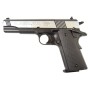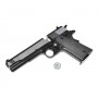 Пневматический пистолет Umarex Colt Government M1911 A1 Dark OPS – это газобаллонная версия прославленного Кольта М 1911А1 от популярного германского производителя пневматики. Пистолет функционирует благодаря баллончику с углекислым газом на 12 грамм. За счет рычажковой конструкции системы прокола баллончика пистолет быстро приводится в рабочее положение. Боеприпасы – пули из свинца калибра 4,5 мм. Отсек для барабана расположен в рукоятке и рассчитан на 8 единиц. Доступный режим стрельбы – полуавтоматический. УСМ пистолета двойного действия, можно стрелять как с предвзводом курка, так и самовзводом. Затвор пистолета подвижный, при нажатии на него становится доступным отсек для барабана. Начальная скорость полета свинцовых пуль – 120 м/с. За счет нарезов в стволе пуля в полете стабильна, что положительно влияет на дальность прицельной стрельбы и ее кучность.