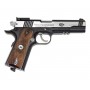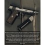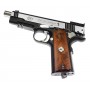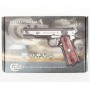 Масса модели - 930 г, что тоже близко к огнестрельному прототипу. Сделана модель Umarex Colt Special Combat из металлического сплава. На рукояти накладки пластиковые, у них вид лакированного дерева. Рамка данной модели и часть затвора покрыты чёрным покрытием. Элементы управления данной моделью пистолета никелированные. Это курок, спусковой крючок, рычаг затворной задержки, а также флажок предохранителя.