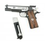 Магазин в данной модели пистолета Umarex Colt Special Combat Classic полноразмерный, это значит, что в нём сразу находится обойма, отсек для газового баллона и клапанный механизм. Как боеприпасы используются круглые пули калибра 4,5, в магазине вмещаются 19-20 стальных шариков. Баллон устанавливают в отсек, находящийся в середине магазина, и поджимают винтом, который расположен в нижней части рукояти. Из данной пневматической модели пистолета стрелять можно хоть самовзводом, хоть с предварительным взводом.
