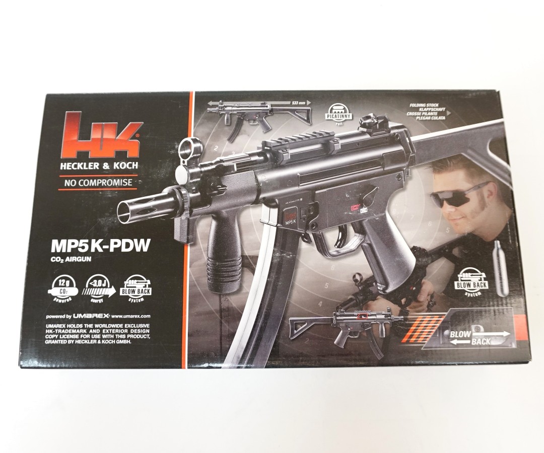 Пневматическая модель пистолета Umarex Heckler & Koch MP5 K-PDW - это копия одноименного огнестрельного оригинала. Довольно компактный пистолет-пулемёт MP5K был создан компанией Heckler & Koch, задумываясь как оружие для скрытого ношения, которое подходит для ближнего боя и обеспечивает значительную огневую мощь. Огнестрельный прототип широко применяется во всём мире антитеррористическими структурами, а также службами охраны высокопоставленных лиц. MP5K-PDW - это модификация оружия с рамочным складным прикладом и со стволом, имеющим крепление для глушителя.