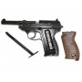 Umarex Walther P38 является пневматической моделью пистолета калибра 4,5 от хорошо известного качеством изделий производителя Umarex из ФРГ. Внешне модель представляет собою копию огнестрельного Walther P38, состоявшего на вооружении Вермахта с 1938. Это легендарный пистолет, пользовавшийся популярностью, помимо армии Рейха, также у советских военных. Он считался отличным трофеем, также использовался как наградное оружие.