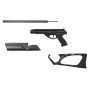 Трансформация пистолета в винтовку – процесс очень простой, и занимает не больше одной минуты. Необходимо извлечь пятку рукоятки и установить на это место приклад. Далее снимается мушка, и цевье устанавливается в специальные пазы. Последнее действие – вкручивается удлиненный ствол. Прицельные приспособления модели – мушка с фиберглассовыми нитями и целик.