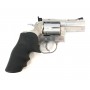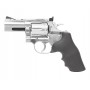 Пулевой револьвер Dan Wesson 715-2,5 Silver имеет цельнометаллическую конструкцию, и отличается высоким качеством подгонки всех деталей. При его производстве использован качественный металлический сплав, рукоятка эргономичной конструкции изготовлена из пластика. Прицельные приспособления – монолитная мушка и целик регулируемого типа. Модификация оснащена предохранителем кнопочно-сдвижного типа, он находится рядом с курком спуска. При длине в 21 см револьвер весит всего 1 кг. Серебристый цвет и хромирование делают этот револьвер чрезвычайно эффектным. Комплект включает: паспорт, ускоритель заряжания, фальш-патроны.