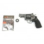 Пневматический револьвер Gamo PR-725 – это изделие из серии цельнометаллических модификаций от популярного бренда, созданное на базе знаменитого Smith & Wesson. Револьвер отличается укороченной длиной ствола и компактностью. Барабан, откидывающийся влево, вмещает 8 пневматических пуль калибра 4,5 мм. УСМ Gamo PR-725 двойного действия, стрельба ведется в полуавтоматическом режиме. Показатель начальной скорости выстрела – 100 м/с.