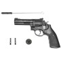 У пневматического револьвера Umarex Smith and Wesson 586 4" отличный нарезной ствол. Прицельные приспособления тоже довольно удобны, потому револьвер и красивый, и точный. Скорость пули - на уровне 120 м/с. Баллона хватит на 60 выстрелов, таким образом, запаса газа хватит на 6 барабанов-клипов.