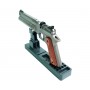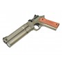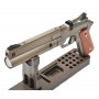 Материал корпуса – металлический сплав, ствол изготовлен из оружейной стали, на рукоятке – пластиковые накладки с рифленой поверхностью. Цвет исполнения изделия Titanium, накладки коричневого цвета. Вес пистолет 0,8 кг, длина 30,5 см. В комплекте идет магазин, ремкомплект, шестигранник, паспорт.