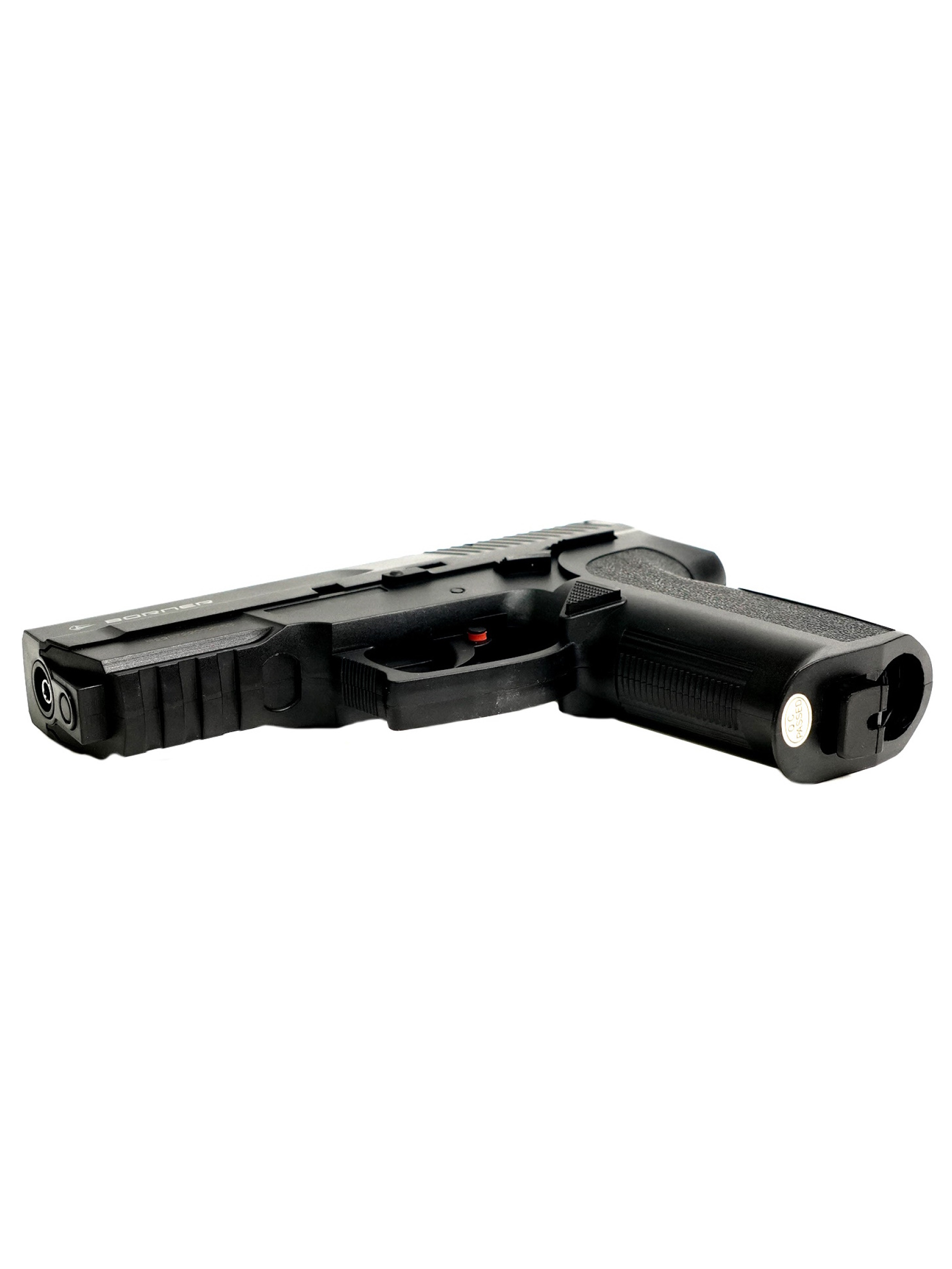 Borner 2022 – это газобаллонный пистолет калибра 4,5 мм (.177), работающий от стандартных 12-г баллончиков CO2. Благодаря такому источнику энергии, вы получаете возможность совершить множество выстрелов, не отвлекаясь на перезарядку. С гладким стволом и начальной скоростью пули до 120 м/с, этот пистолет демонстрирует отличную кучность и дальность стрельбы. Для стрельбы используются шарики BB.