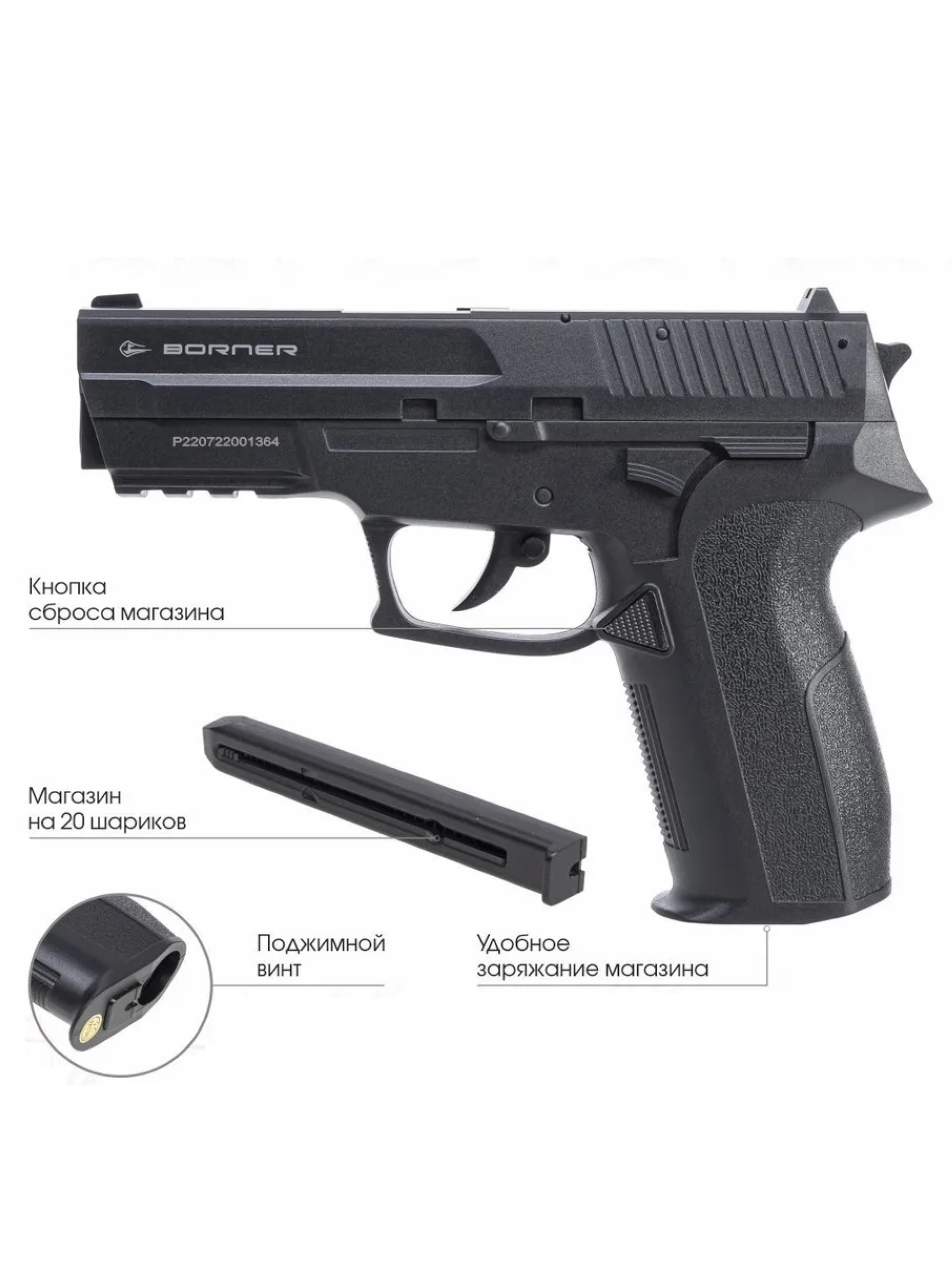Пнематический пистолет Borner 2022 – в точности повторяет легендарный Sig Sauer SP2022. Эта модель, созданная компанией Borner (США/Тайвань), сочетает в себе надежность, простоту использования и отличные характеристики, делая ее идеальным выбором для любителей пневматической стрельбы.