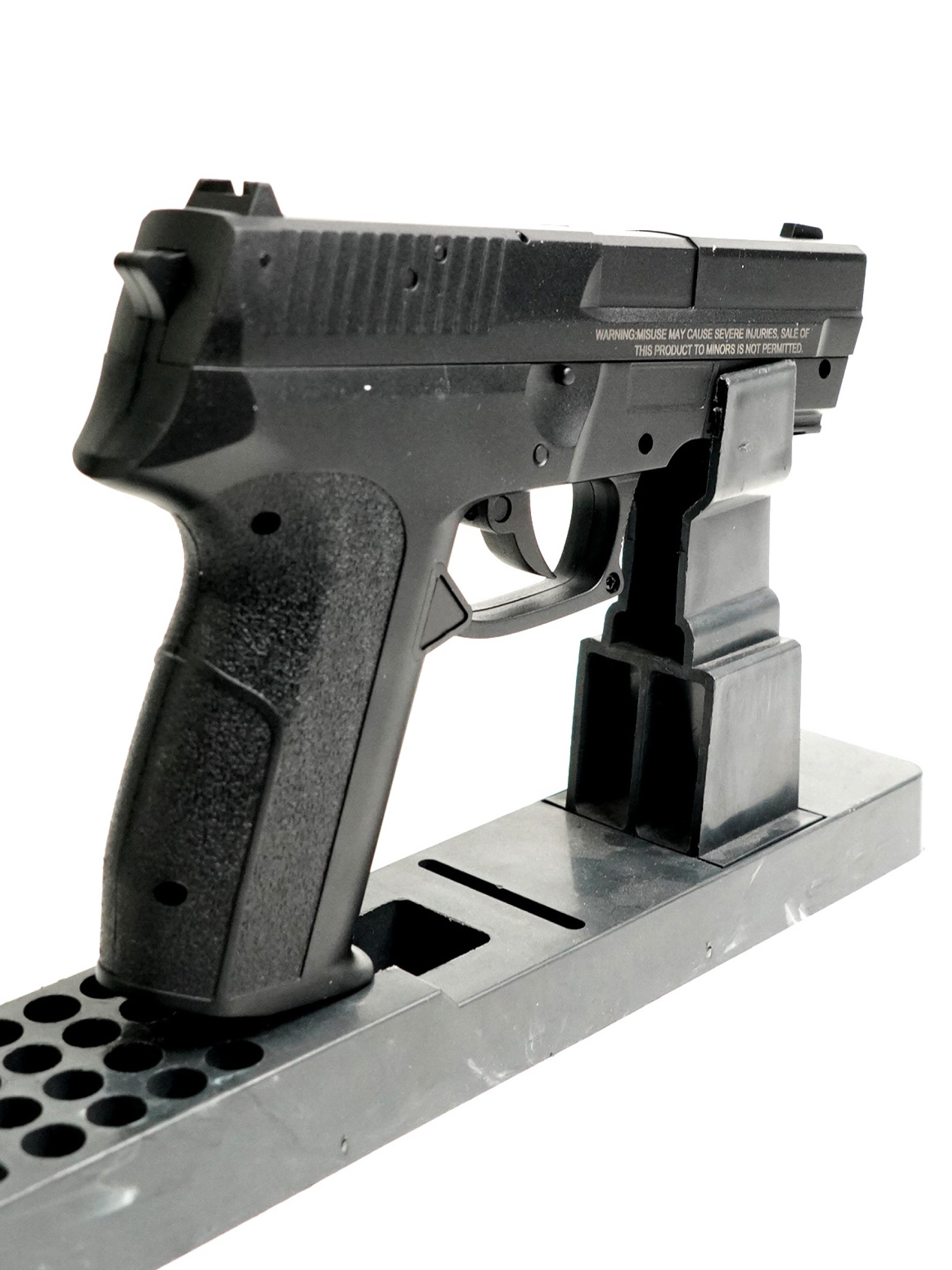 Легкий корпус (всего 425 г), выполненный из прочного пластика, удобен в использовании и не утомляет руку даже при длительной стрельбе. Неподвижный затвор делает конструкцию более надежной и долговечной. Пистолет оснащен нерегулируемыми прицельными приспособлениями для быстрой наводки на цель, а также планкой Weaver/Picatinny под стволом, позволяющей устанавливать различные аксессуары, например, лазерный целеуказатель.