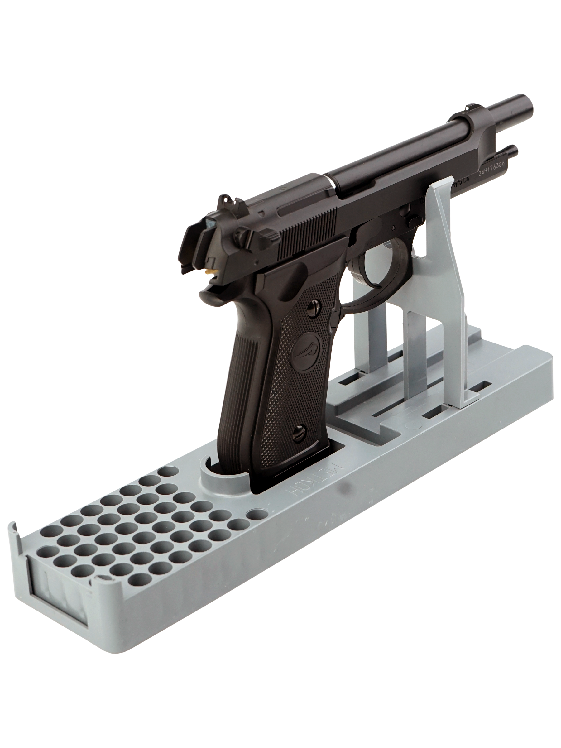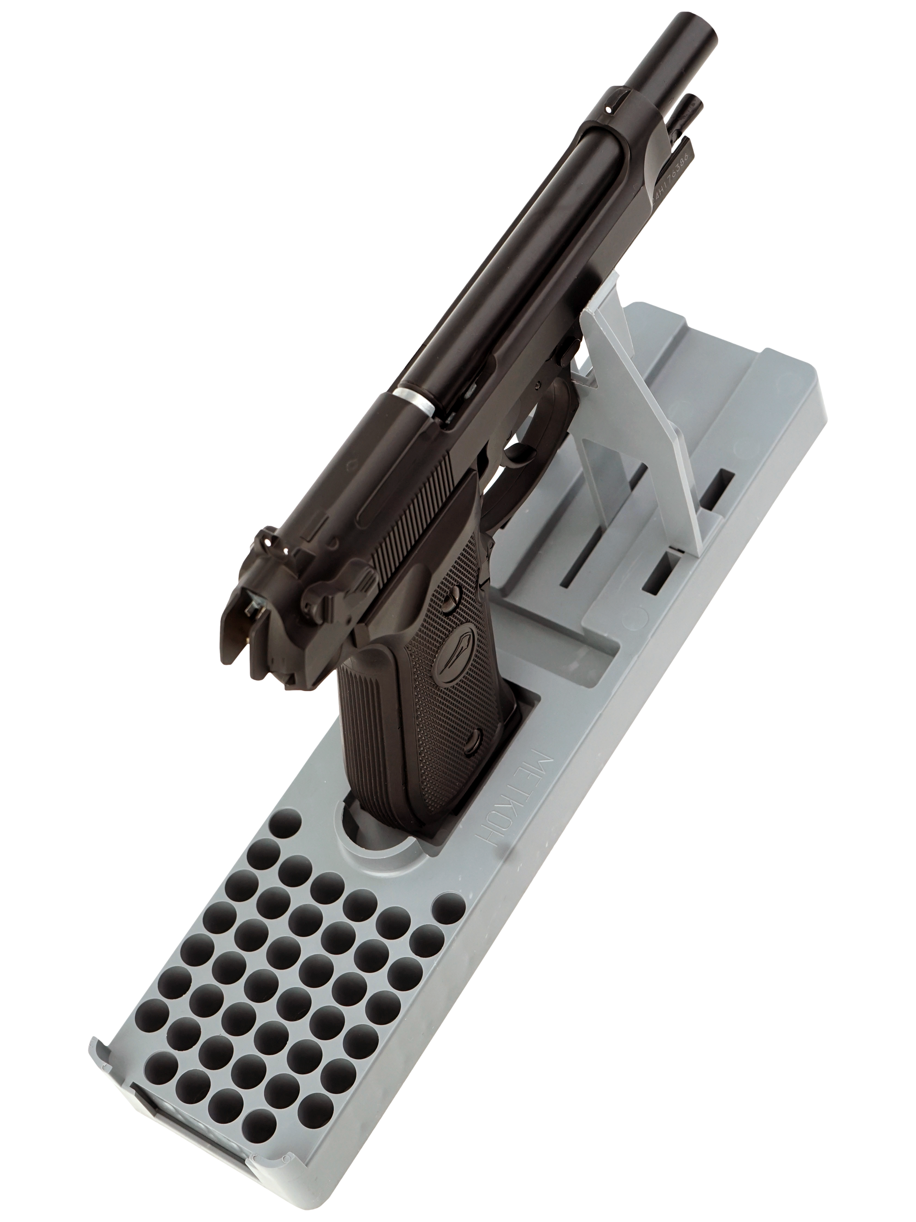 Пистолет сочетает прочность и удобство эксплуатации. Его масса составляет 950 г, а эргономичная форма рукояти с текстурированными полимерными накладками гарантирует надежный хват и исключает скольжение в руке.