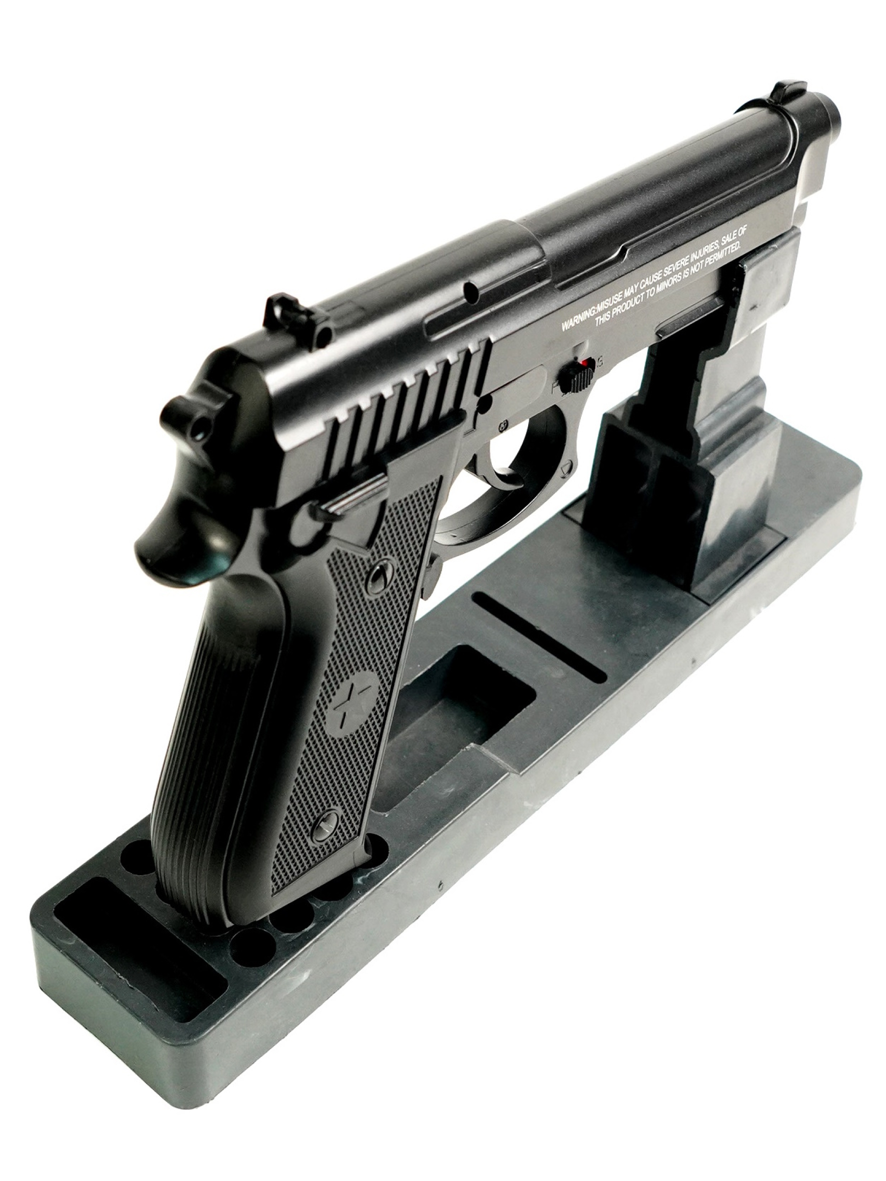 Borner 92M – это газобаллонная пневматика калибра 4,5 мм (.177), работающая на стандартных 12-г баллончиках CO2. Удобство использования на первом месте: просто установите баллончик, зарядите магазин на 20 шариков BB, и вы готовы к точной и увлекательной стрельбе. Гладкий ствол обеспечивает начальную скорость шарика до 120 м/с.
