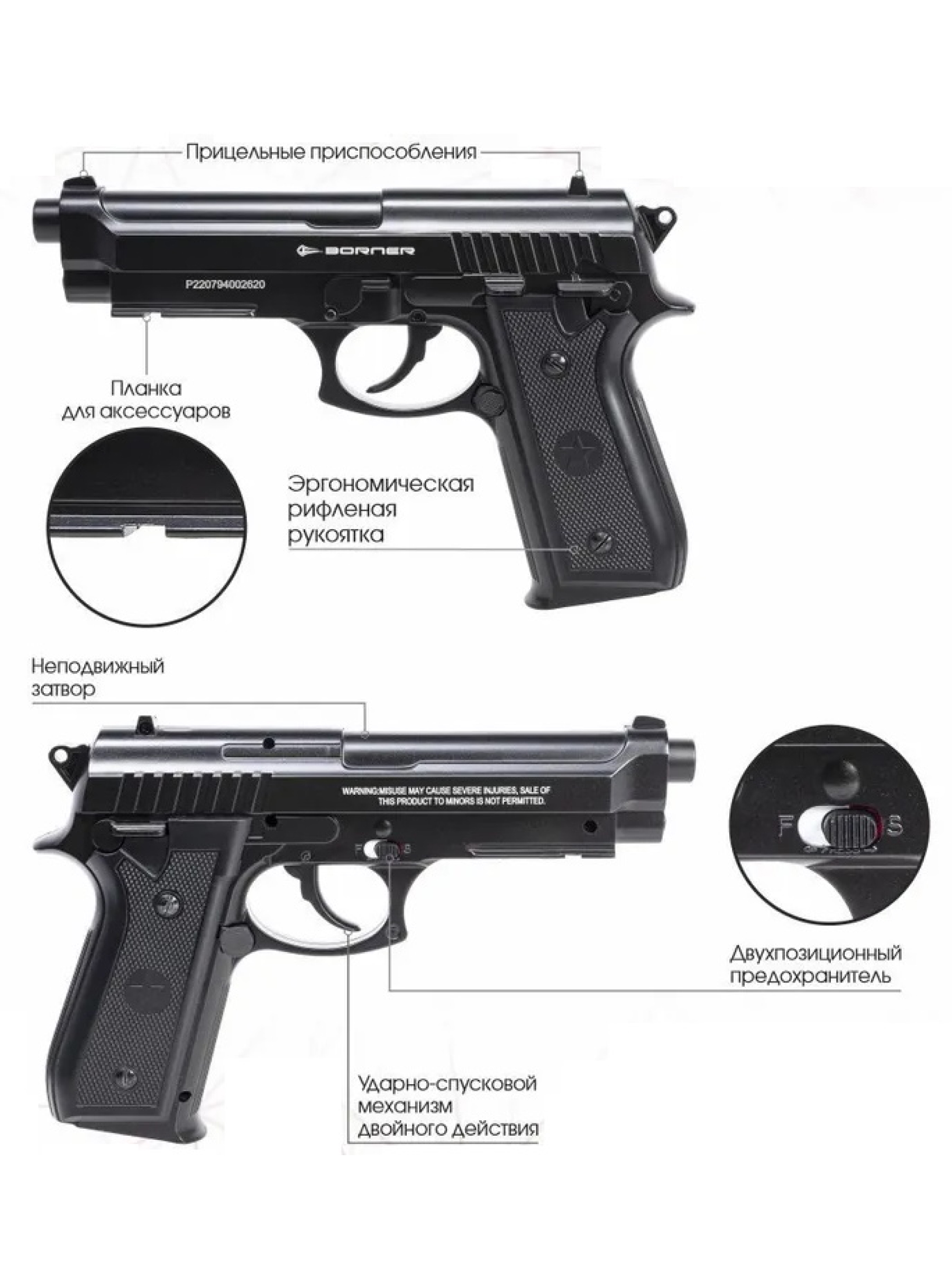 Borner 92M – это отличный способ прикоснуться к легендарной Beretta M92 FS и получить максимум удовольствия от стрельбы!