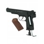 Разобрать и собрать пистолет Gletcher APS-S весьма просто. Для этого следует только лишь нажать на специальную кнопку вверху ствола и затем оттянуть затвор на себя, после этого вытащить возвратную пружину и полностью отсоединить ее.