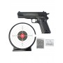 Прицелы — простые нерегулируемые целик и мушка — позволяют быстро ориентироваться, а наличия планки Weaver/Picatinny нет, что делает этот пистолет более компактным. Общая длина составляет 220 мм с стволом длиной 110 мм, а размер 160 x 122 x 27 мм делает его удобным для переноски и хранения. В комплект входит не только пистолет и магазин, но и мишень с шариками (250 шт), инструкция — всё для комфортной и безопасной стрельбы.