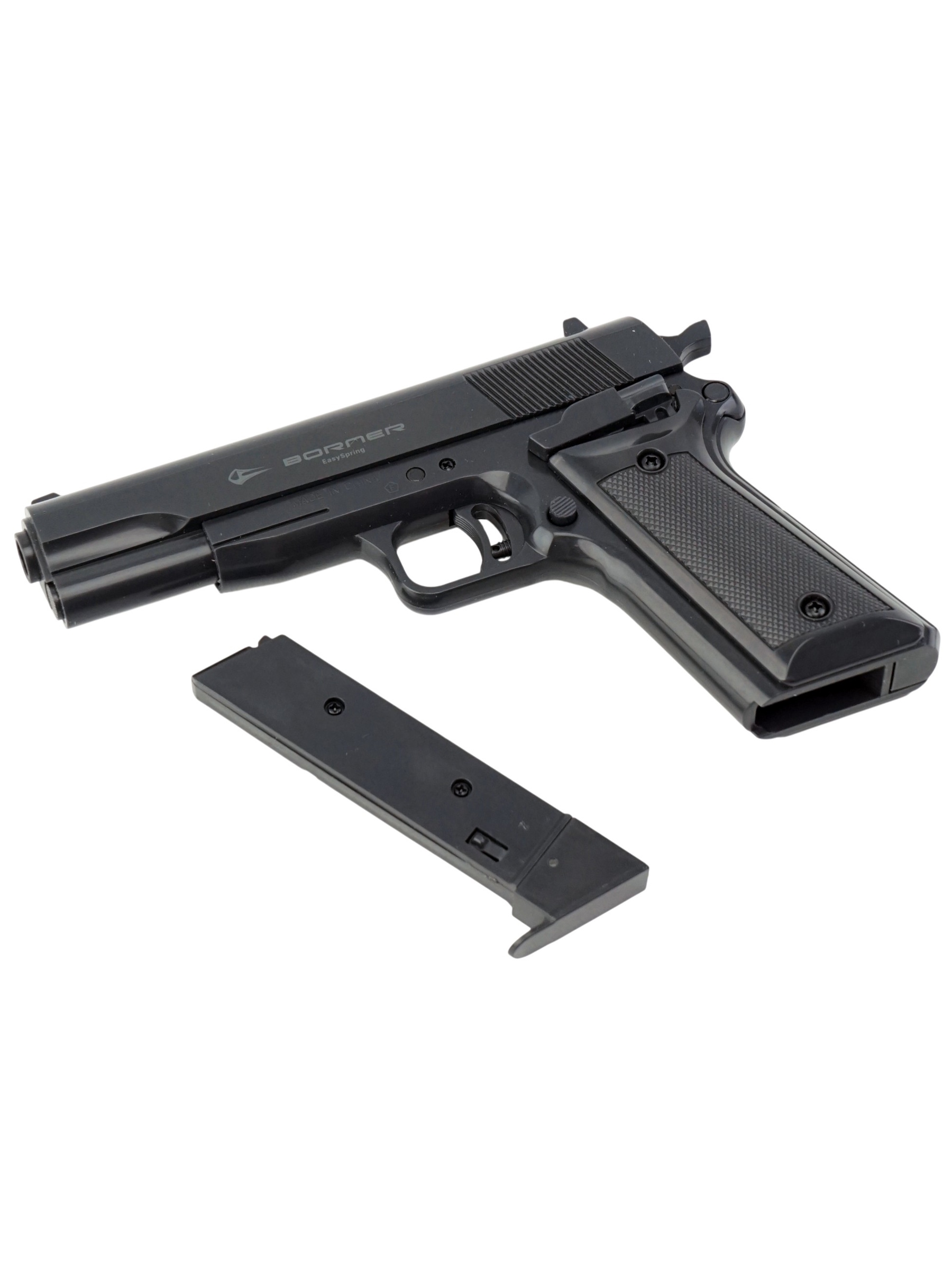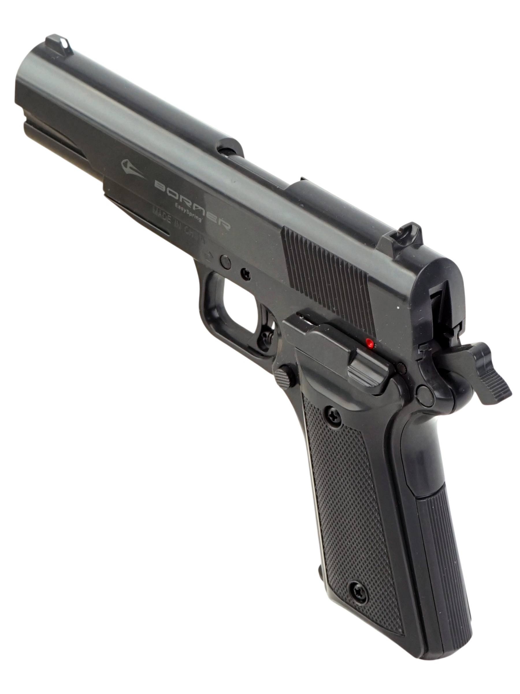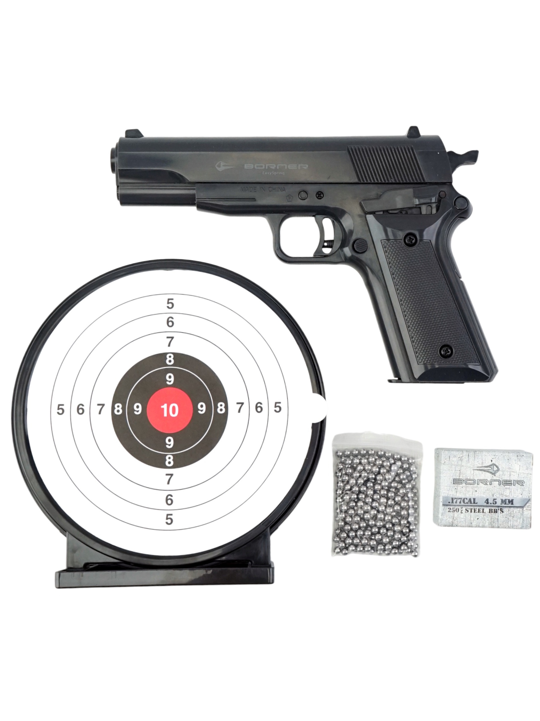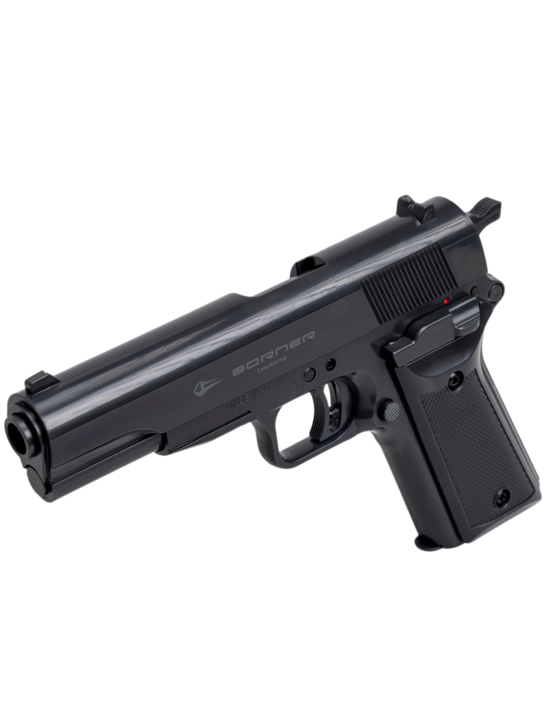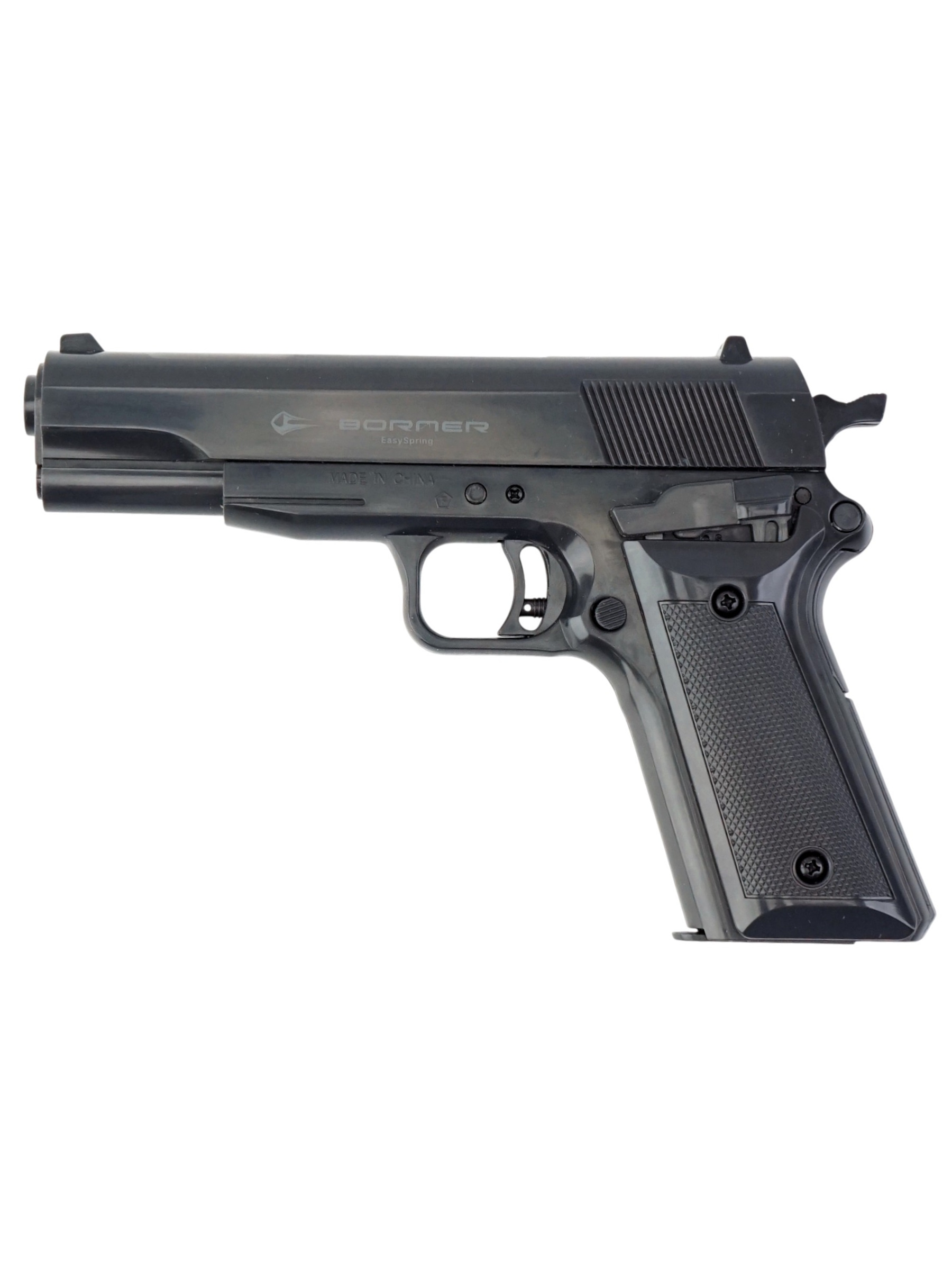 Представляем вам пневматический пистолет Borner Easy Spring — идеальное решение для тех, кто ценит классический дизайн, надежность и простоту использования. Эта модель, выполненная из легкого, но прочного пластика, создана в стиле легендарного Colt 1911, что придает ей стильный и узнаваемый внешний вид.