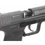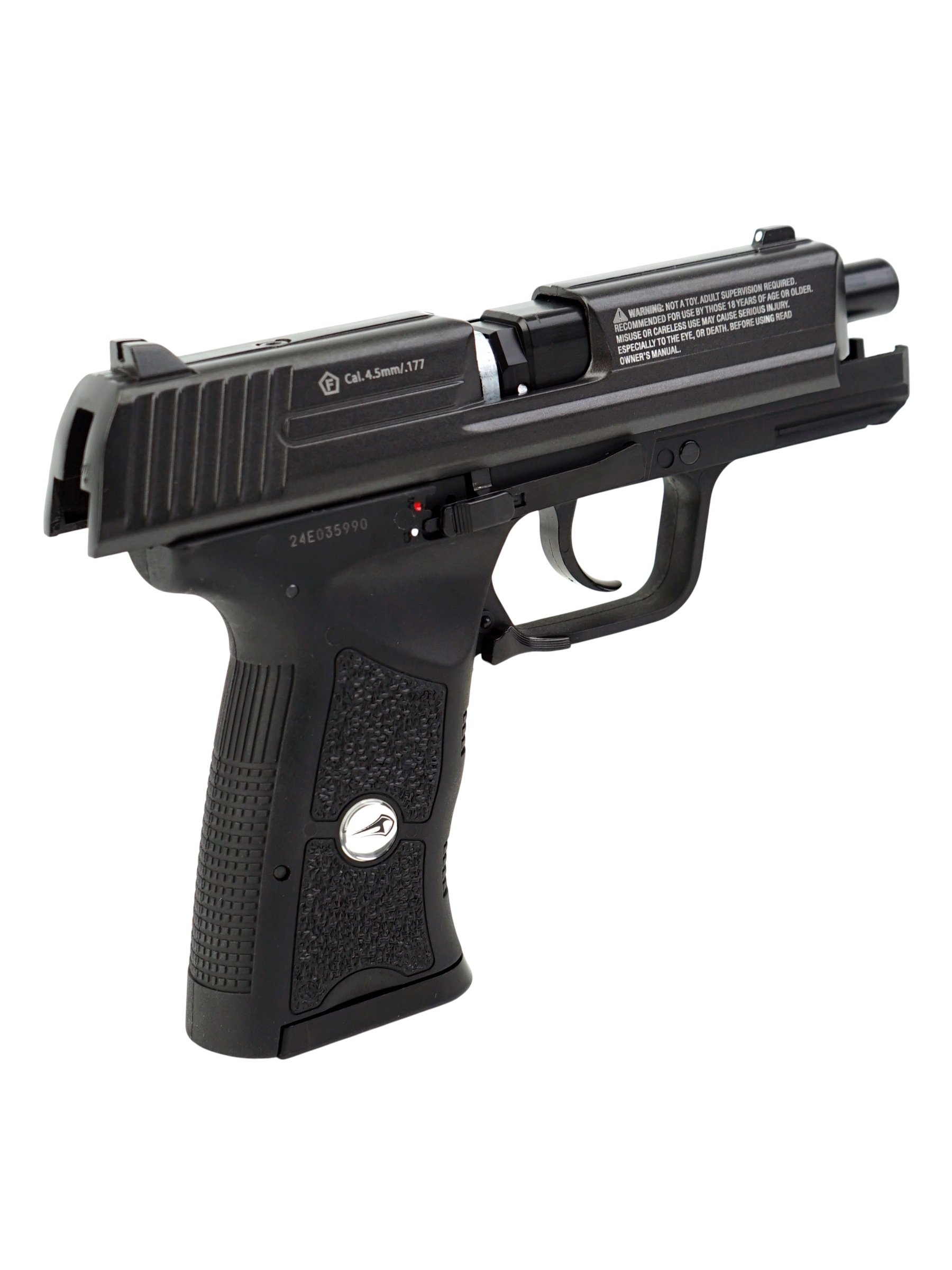 Легкий и прочный корпус, сочетающий в себе металл и пластик, весит всего 650 г, обеспечивая комфортное удержание и маневренность. Подвижный затвор (Blowback) имитирует работу боевого прототипа, делая каждый выстрел максимально реалистичным. Ударно-спусковой механизм одиночного действия позволяет точно контролировать усилие спуска. Безопасность обеспечивается удобным неавтоматическим предохранителем-переключателем.