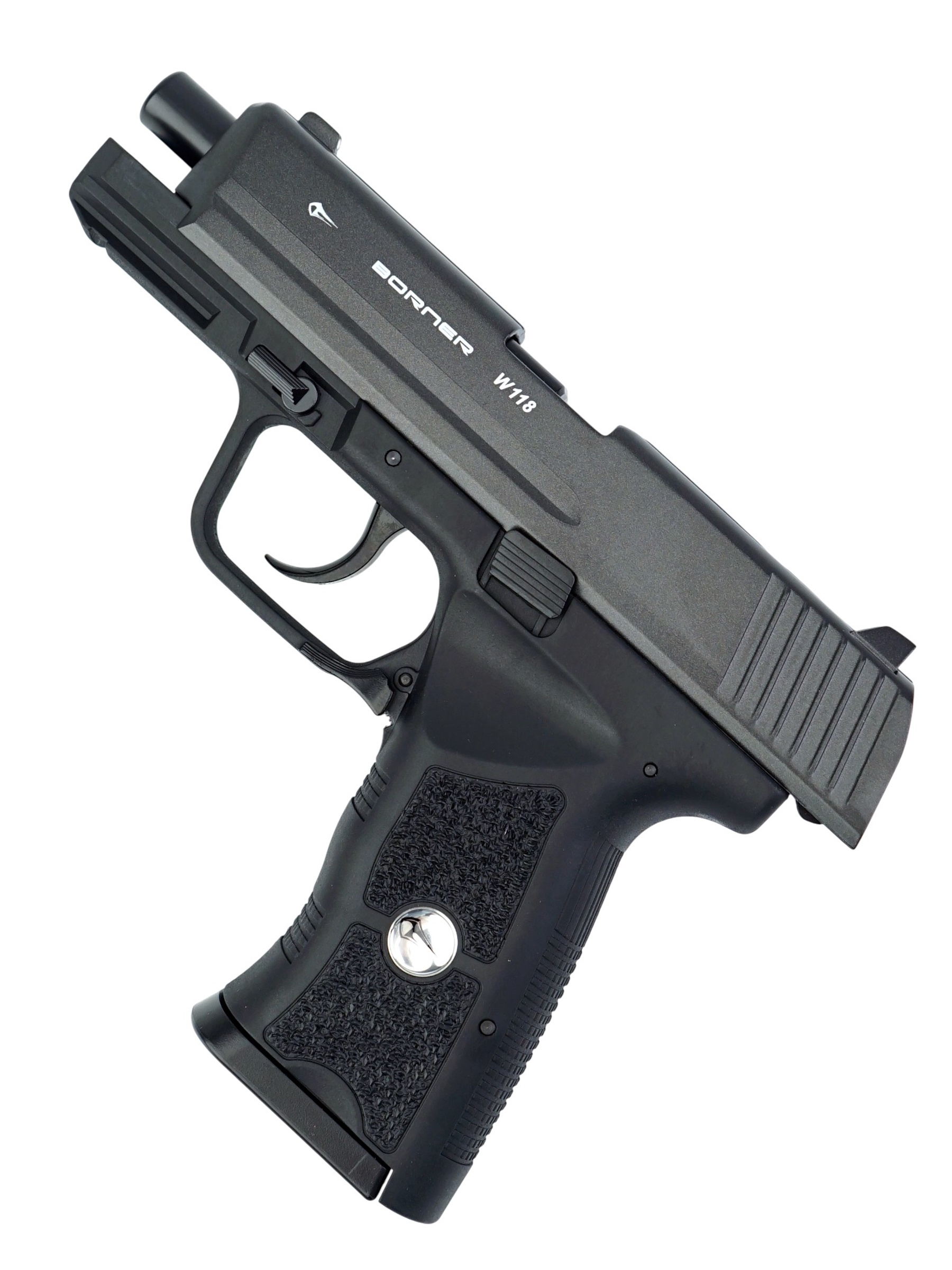 Borner Special Force W118 — это пневматический пистолет, созданный для тех, кто ценит реализм и надежность. Эта модель – точная копия знаменитого Heckler und Koch (HK) P30, разработанная компанией Borner (США/Тайвань). Благодаря ей, вы можете насладиться ощущением настоящего оружия, не выходя за рамки закона.
