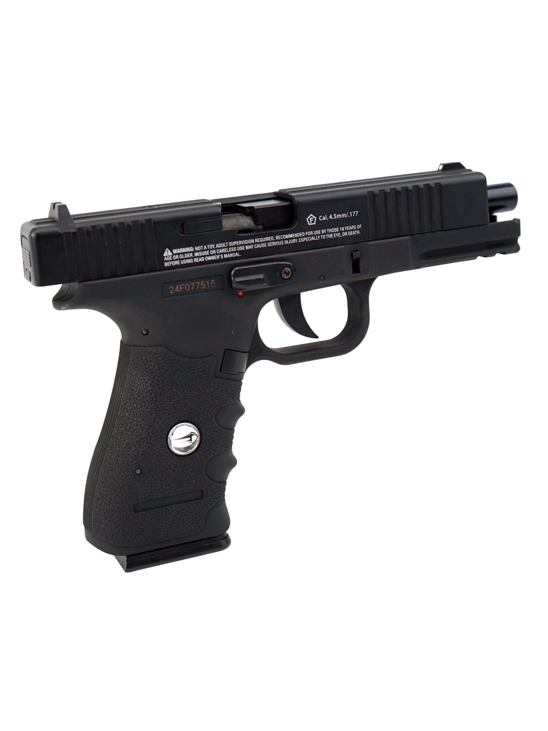 Ощутите реализм каждого выстрела благодаря функции Blowback – подвижный затвор имитирует отдачу боевого пистолета, погружая вас в атмосферу настоящего оружия. Легкий (всего 590 г) и компактный корпус, выполненный из прочного металла и пластика, обеспечивает удобное удержание и отличную маневренность. Ударно-спусковой механизм одиночного действия позволяет контролировать усилие спуска, а неавтоматический предохранитель гарантирует безопасное использование.