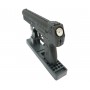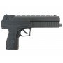 Кнопка сброса магазина у этого пистолета дублируется с двух сторон. Нарезной ствол повышает точность выстрела. Такой пистолет продается без ограничений, за исключением возраста до 18 лет, так как поставляется ослабленным до мощности менее 3 Дж.