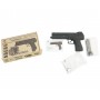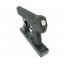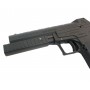 Кнопка сброса магазина у этого пистолета дублируется с двух сторон. Нарезной ствол повышает точность выстрела. Такой пистолет продается без ограничений, за исключением возраста до 18 лет, так как поставляется ослабленным до мощности менее 3 Дж.