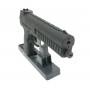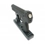 Кнопка сброса магазина у этого пистолета дублируется с двух сторон. Нарезной ствол повышает точность выстрела. Такой пистолет продается без ограничений, за исключением возраста до 18 лет, так как поставляется ослабленным до мощности менее 3 Дж.