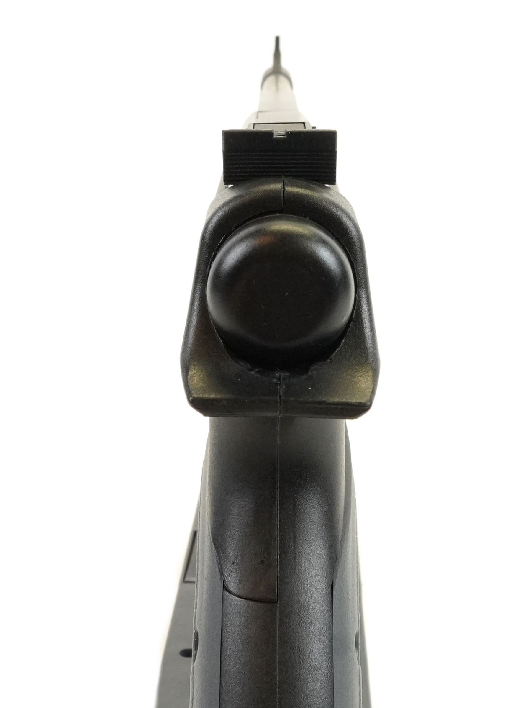 Металлический корпус делает пистолет прочным и долговечным, а эргономичная рукоятка из пластика обеспечивает удобный хват. Вес в 920 г придает оружию солидность и устойчивость при стрельбе. Удобство использования обеспечивается наличием предохранителя.