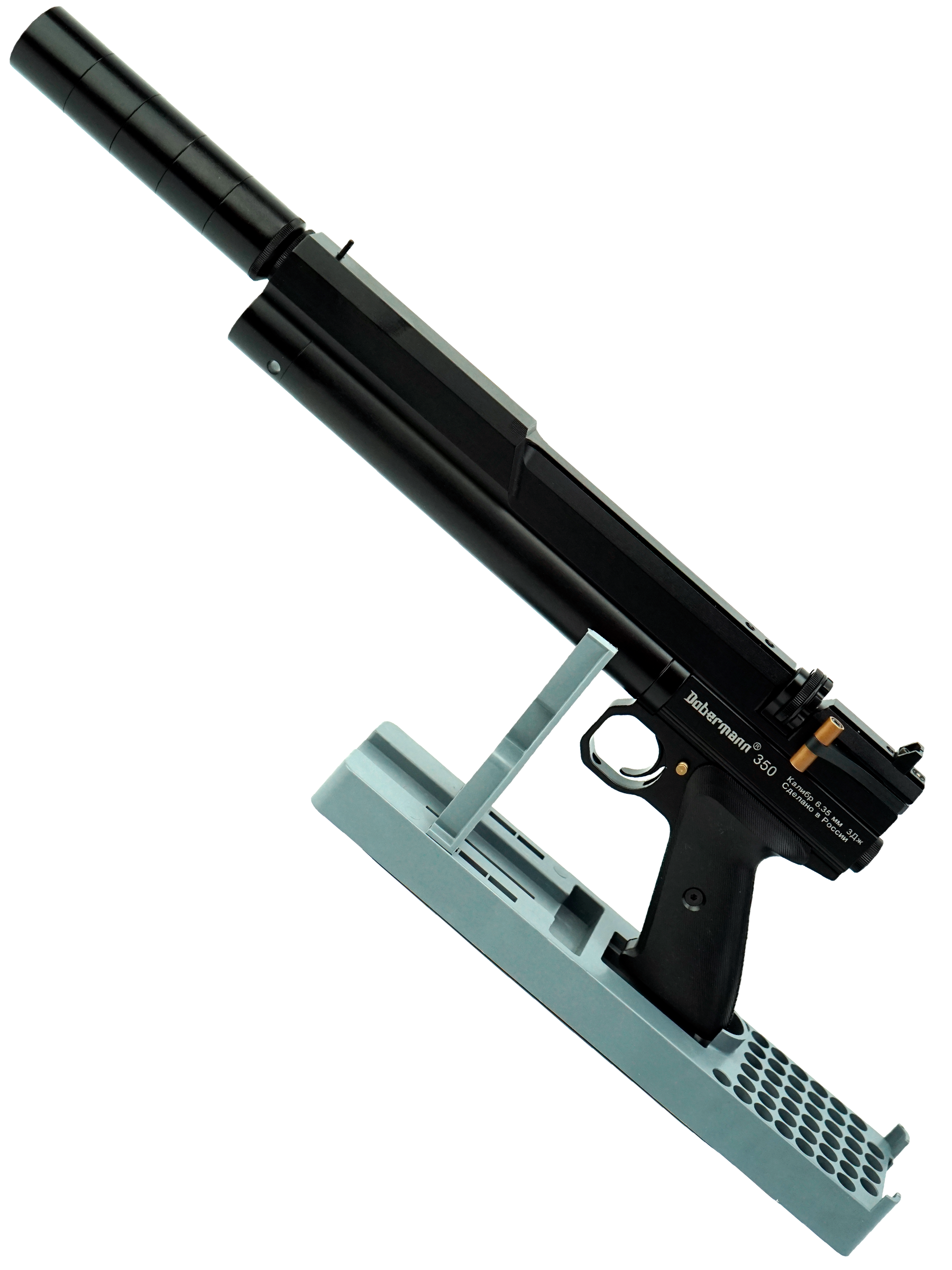 Dobermann 350 Эксцентрик — солидный, мощный и надежный пистолет, изделие высокого качества сборки для тренировок в стрельбе.