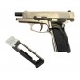 Ударно-спусковой механизм - двойного действия: взвести курок можно как вручную, так и нажав спусковой крючок; курок при этом будет взводиться автоматически. Особенностью этой модели является то, что ее затвор подвижен только при извлеченном магазине, блоубэка нет, рычаг затворной задержки - муляж.