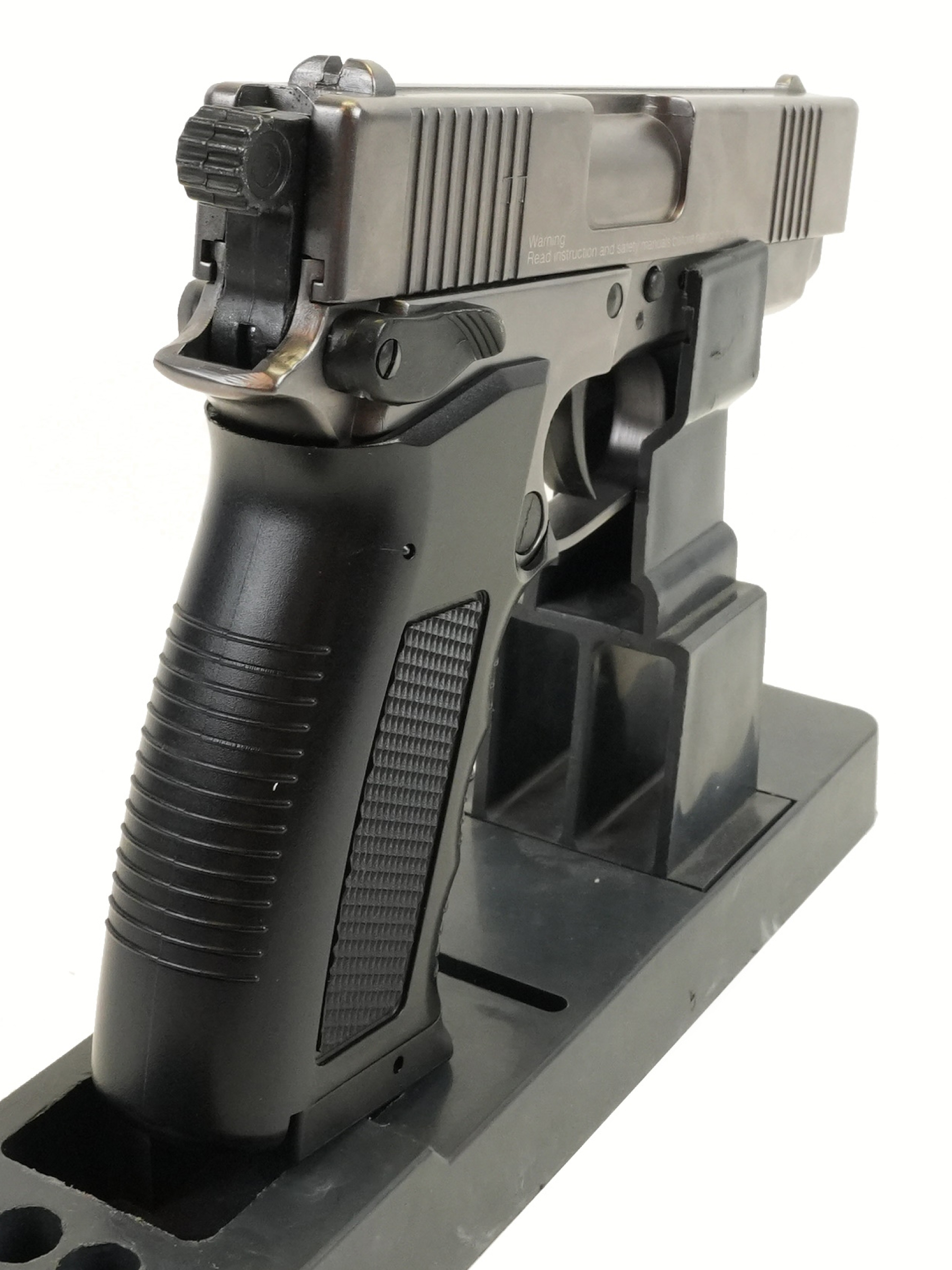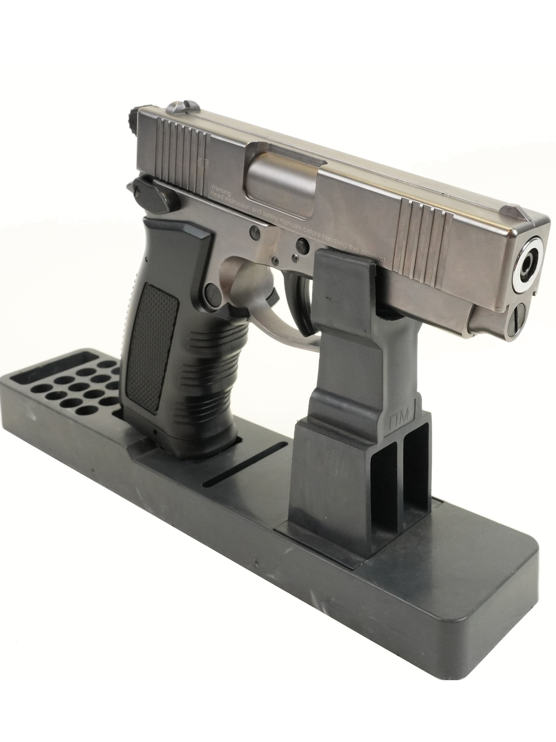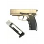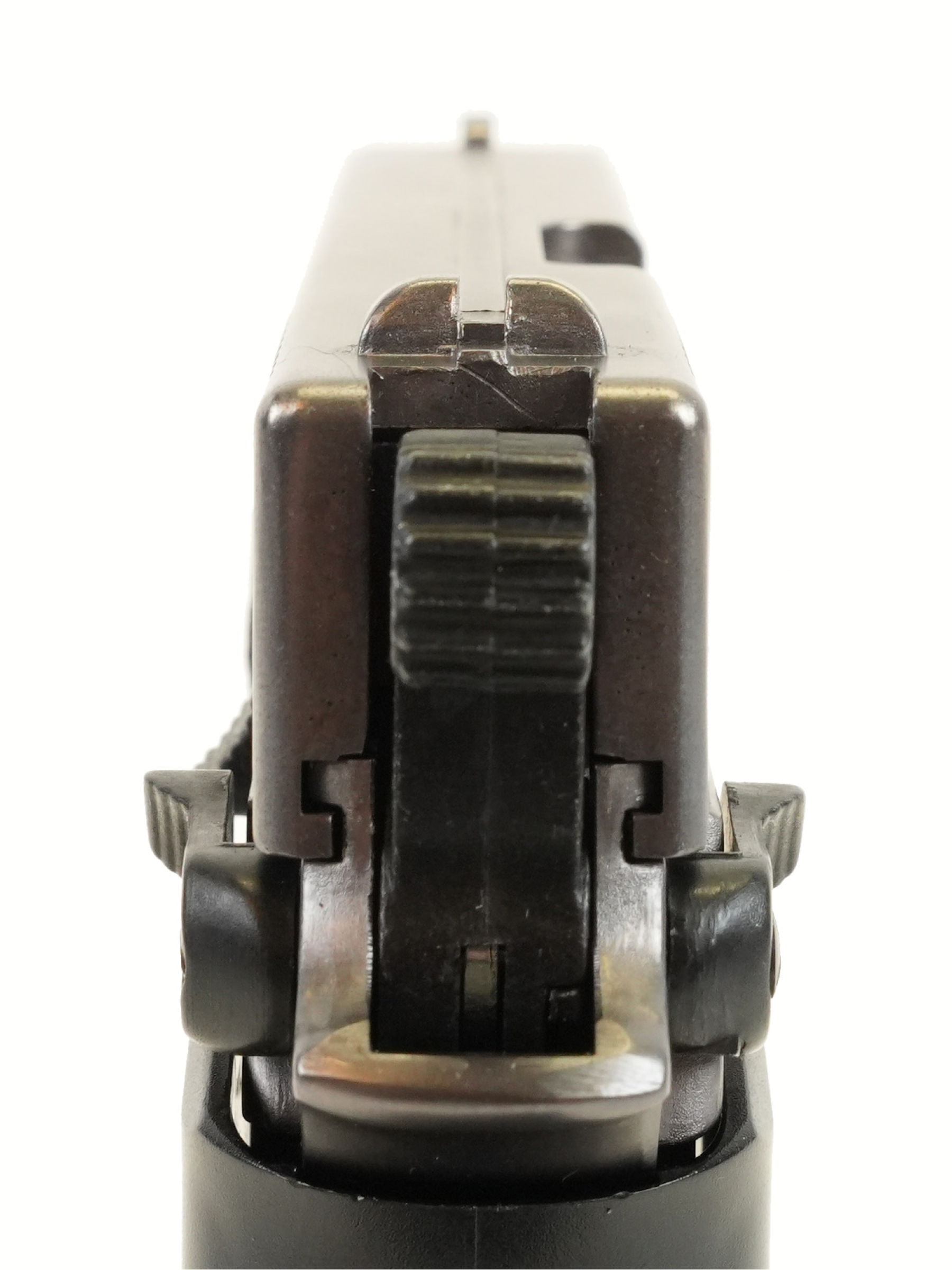 Ударно-спусковой механизм - двойного действия: взвести курок можно как вручную, так и нажав спусковой крючок; курок при этом будет взводиться автоматически. Особенностью этой модели является то, что ее затвор подвижен только при извлеченном магазине, блоубэка нет, рычаг затворной задержки - муляж.