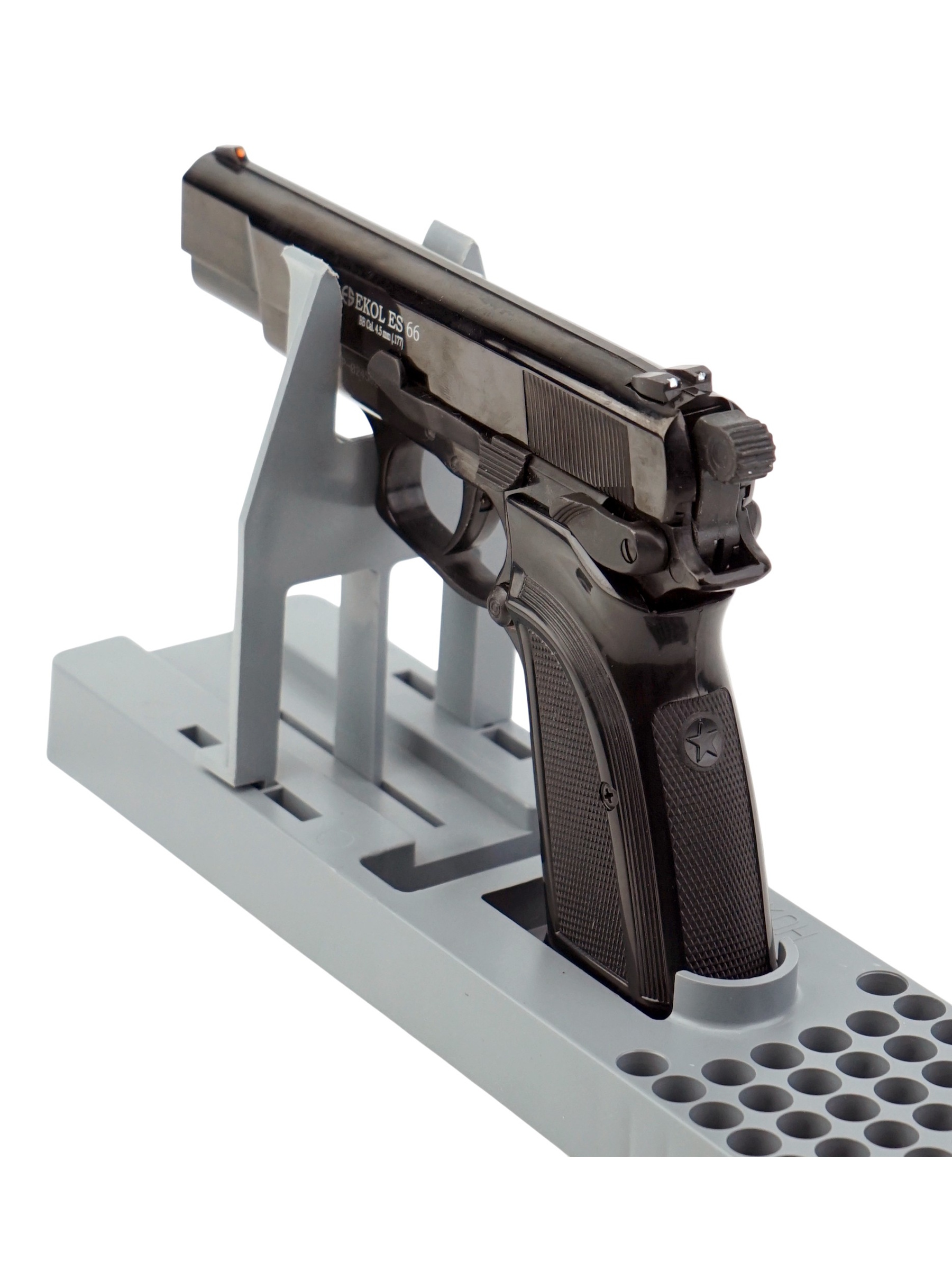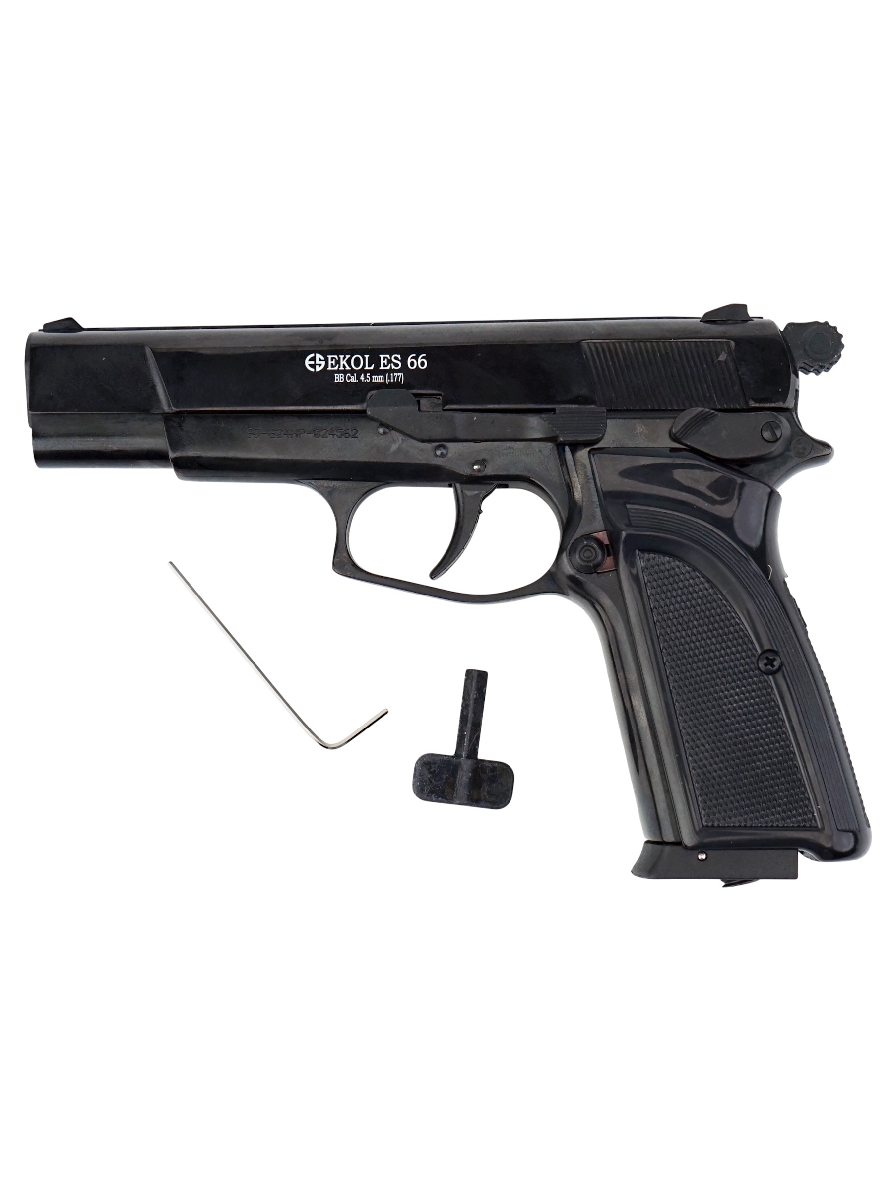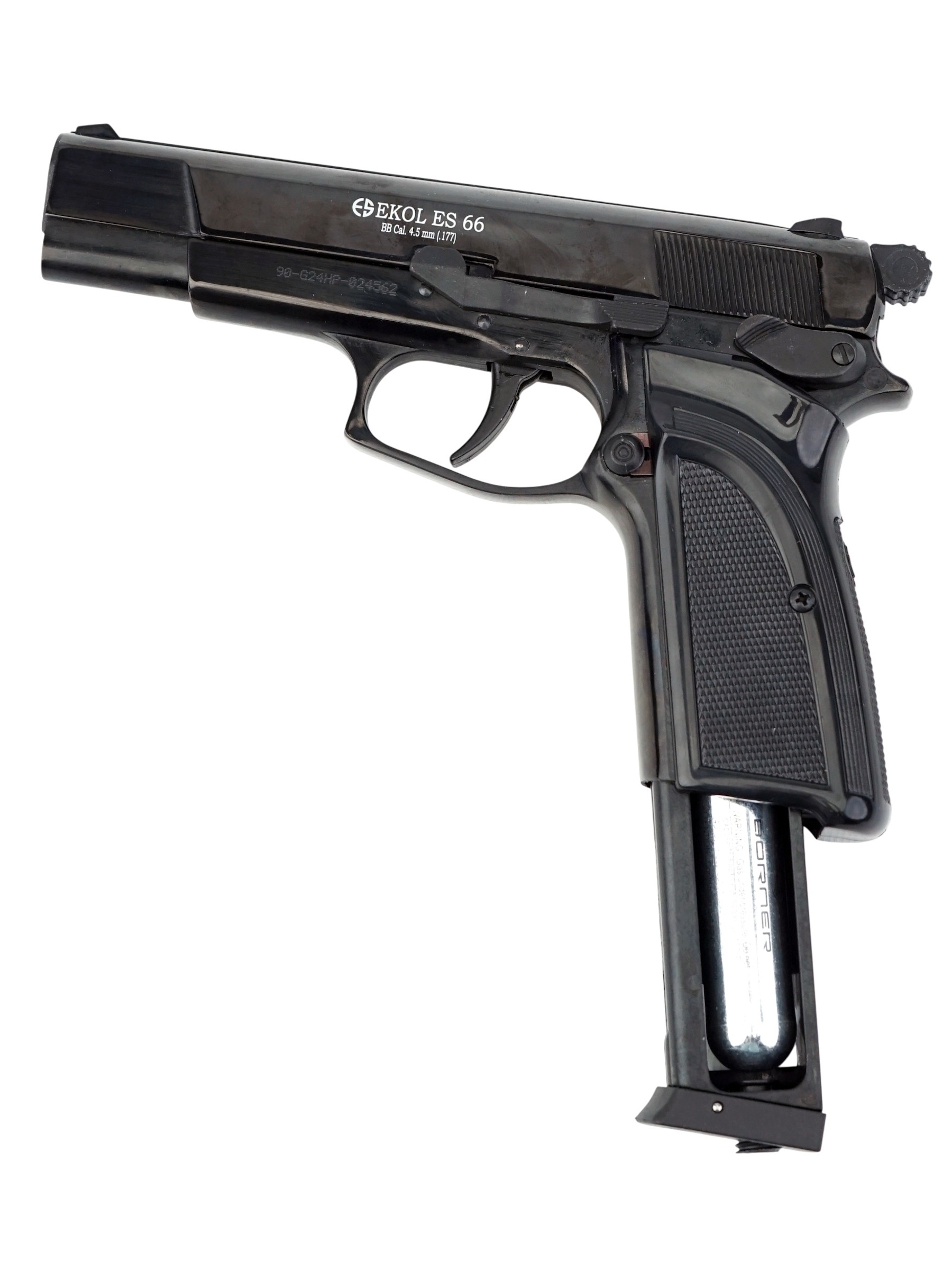 Пневматический пистолет Ekol ES 66 от турецкого производителя Ekol использует в качестве источника энергии 12-граммовые баллончики с углекислым газом.