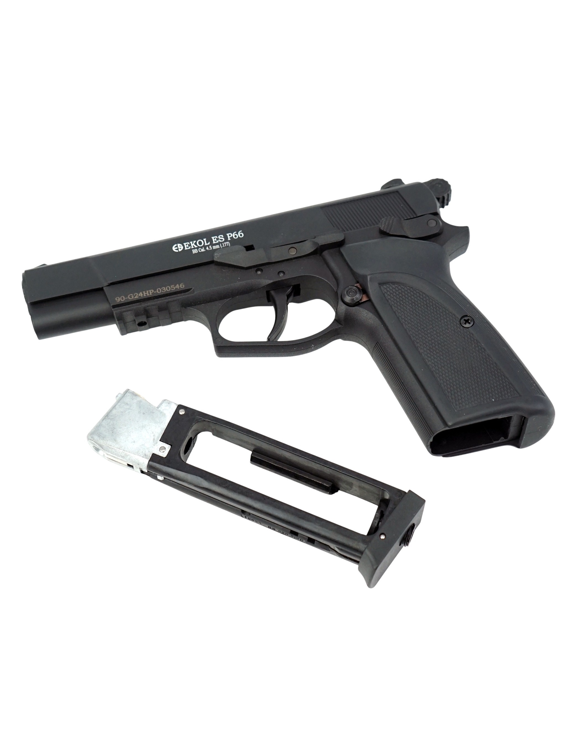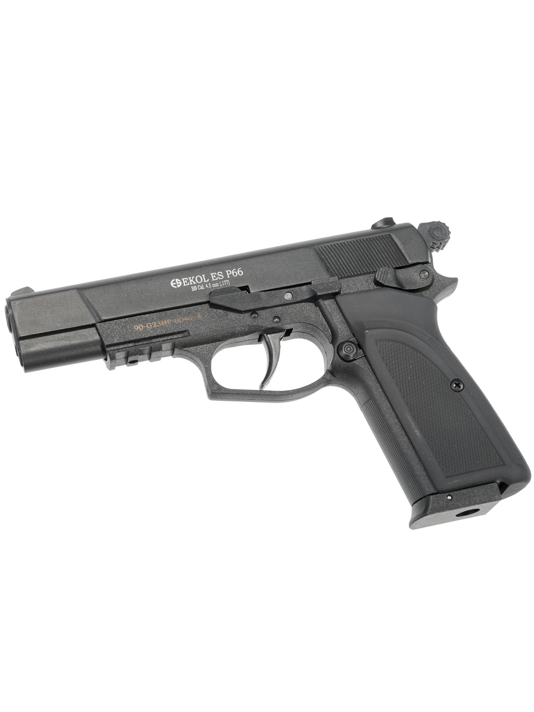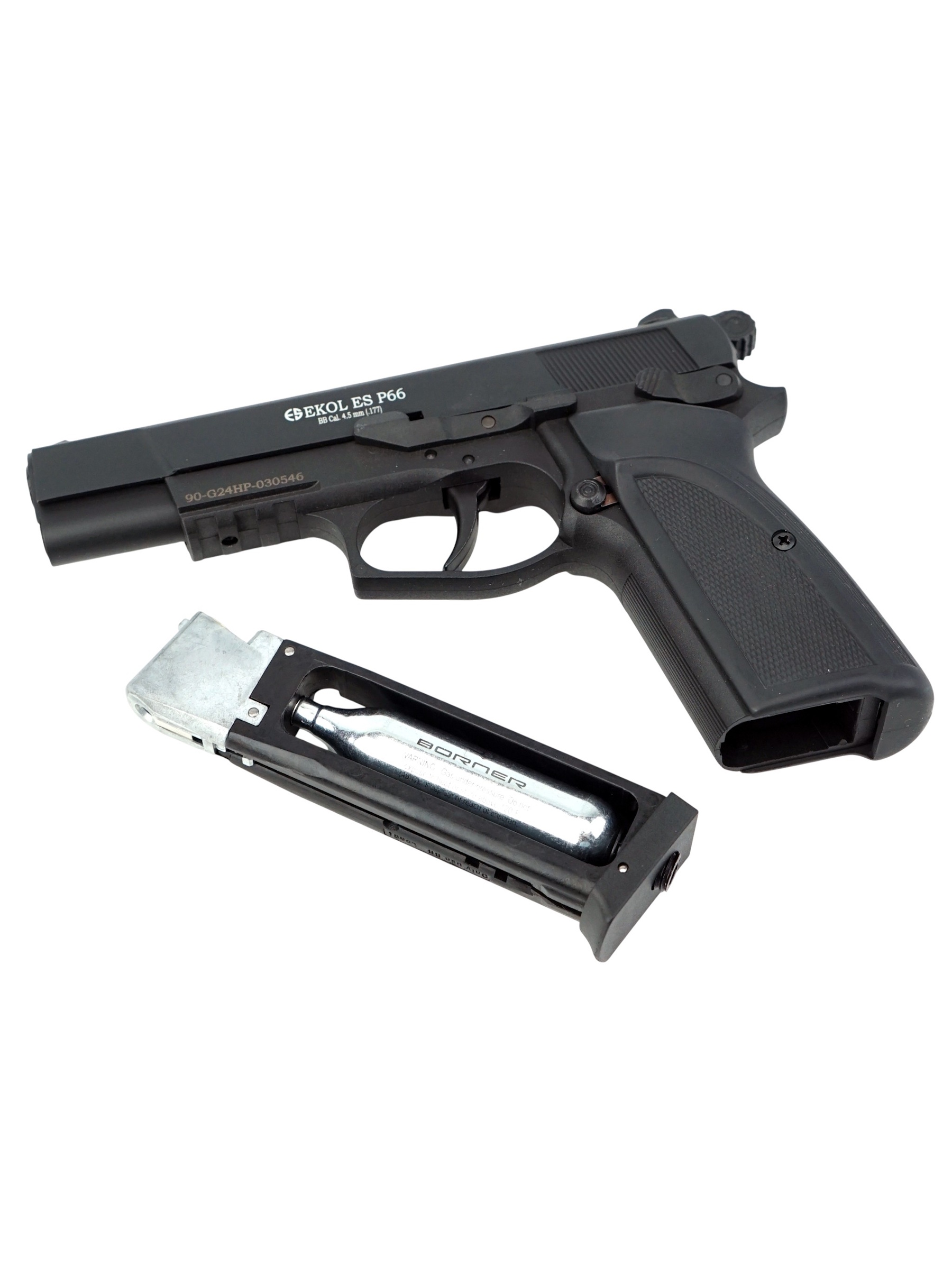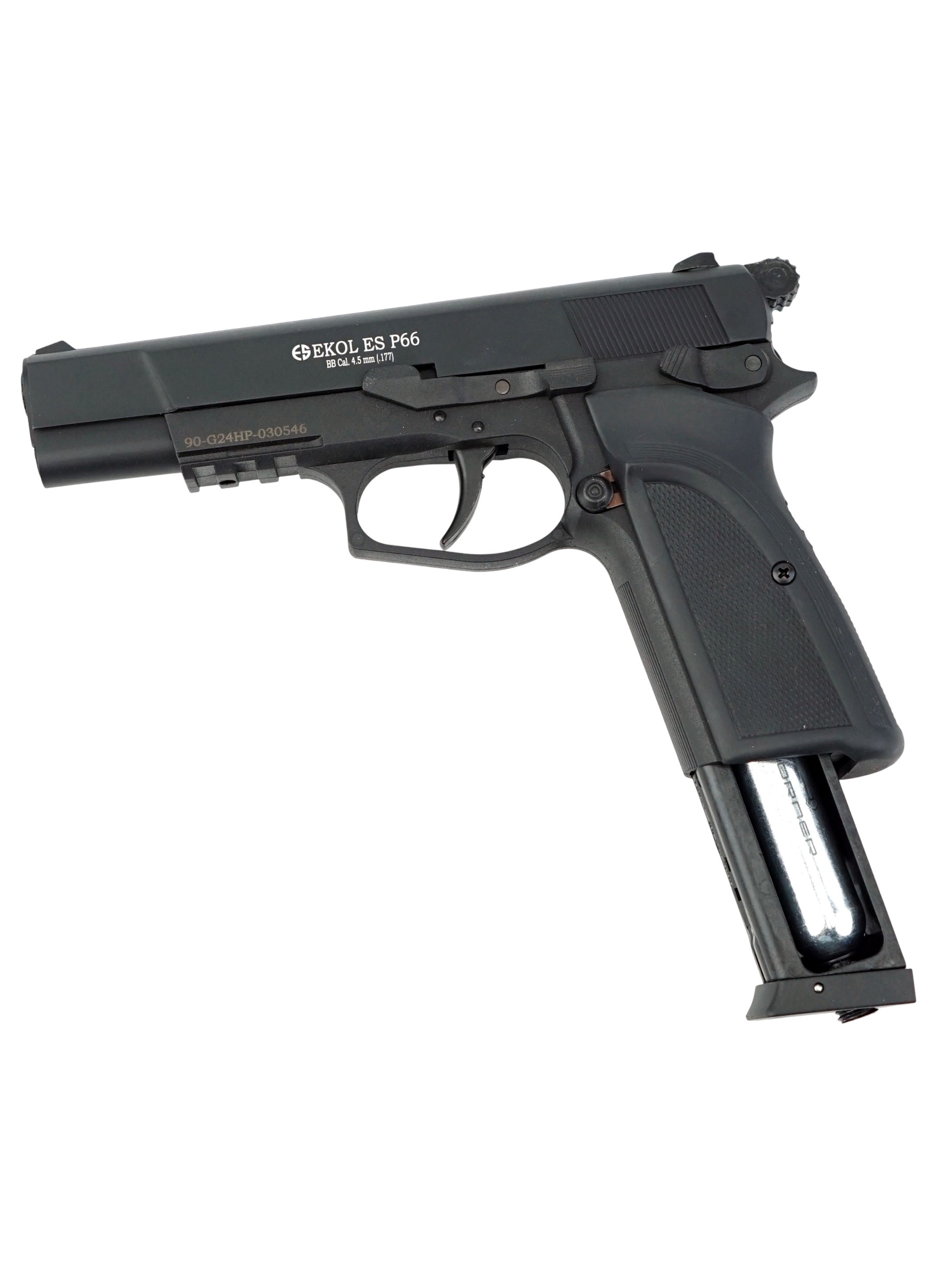 Пневматический пистолет Ekol ES P66 от турецкого производителя Ekol использует в качестве источника энергии 12-граммовые баллончики с углекислым газом.