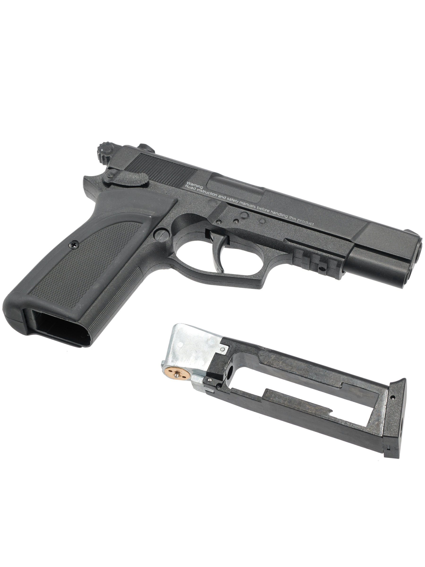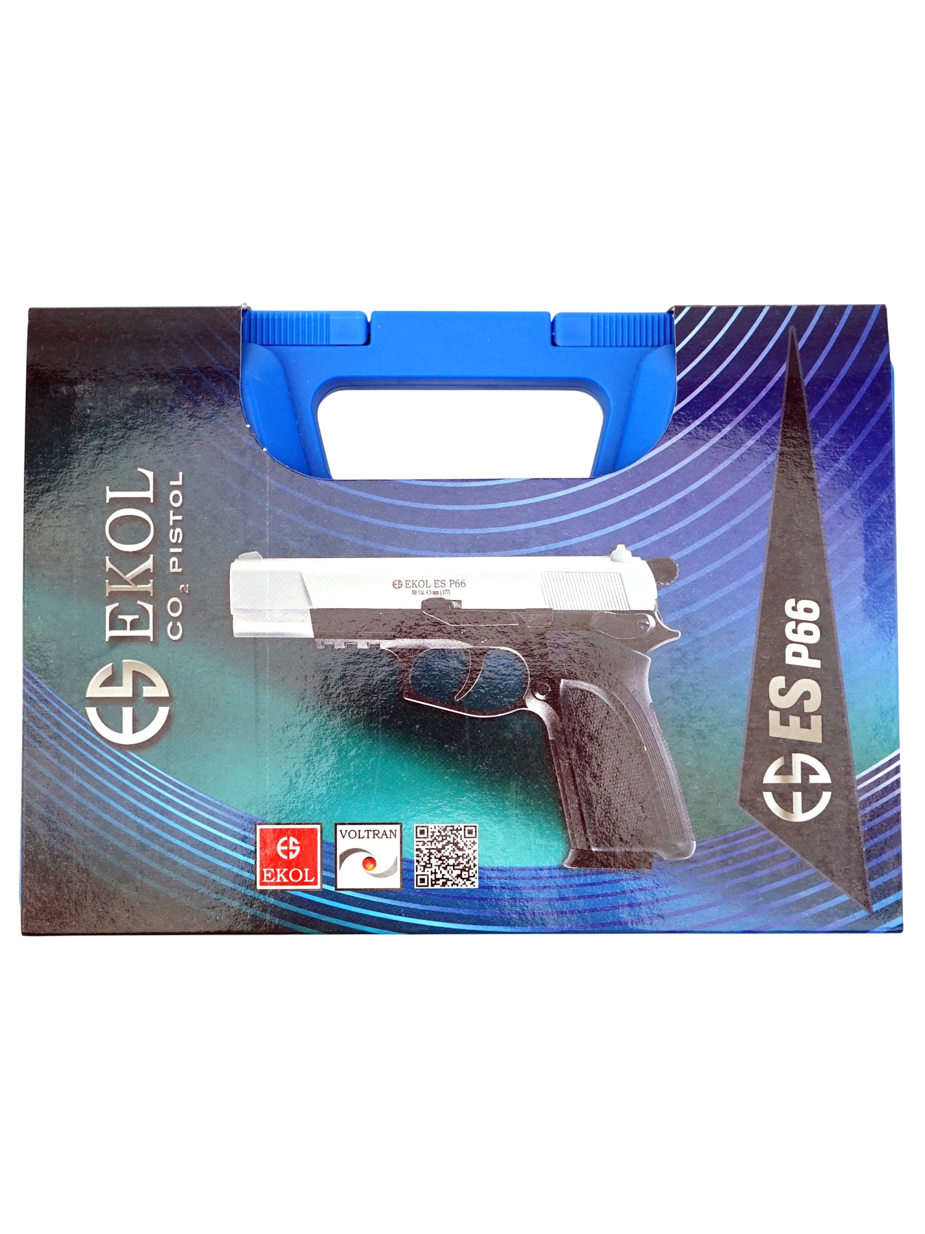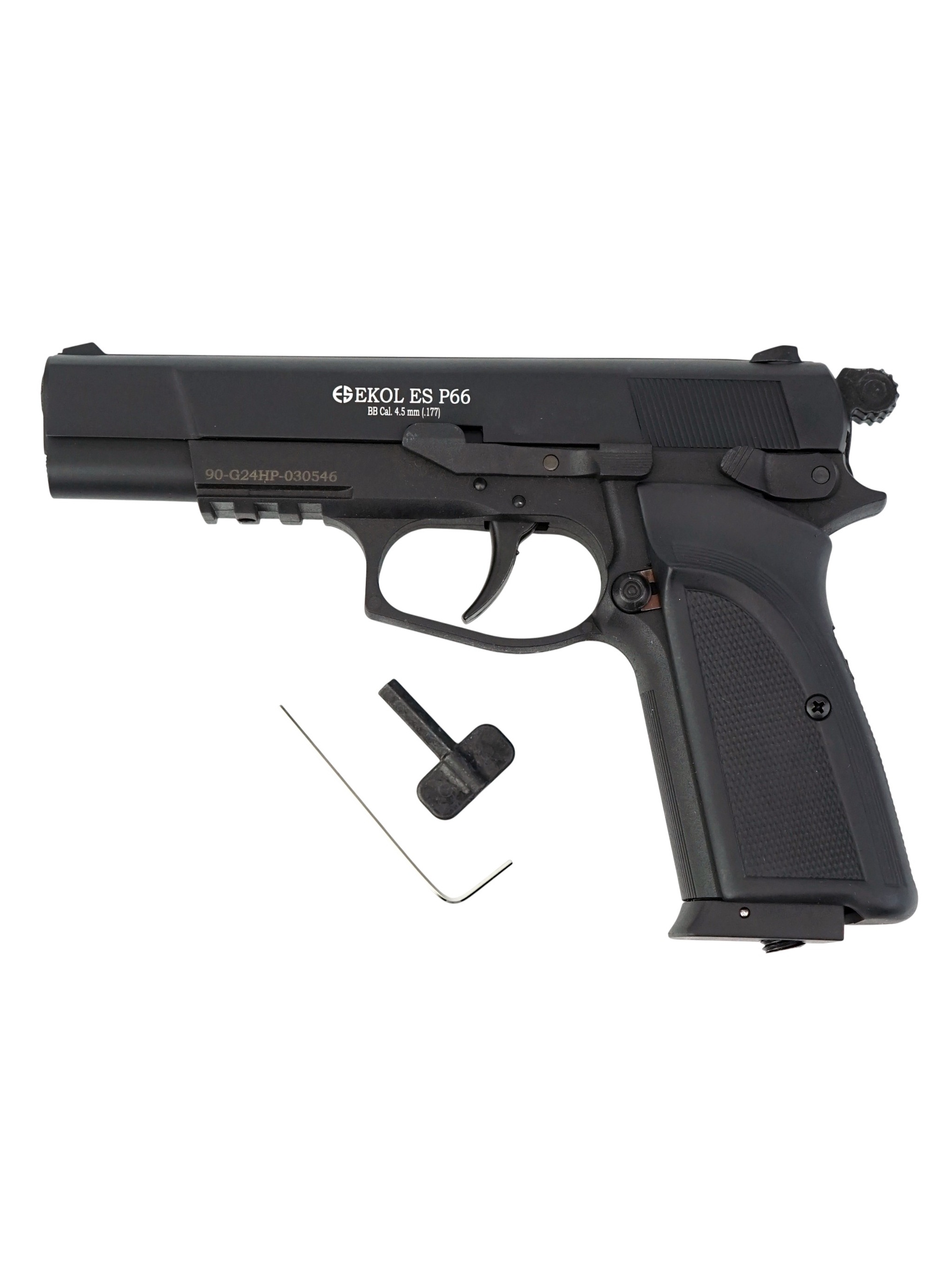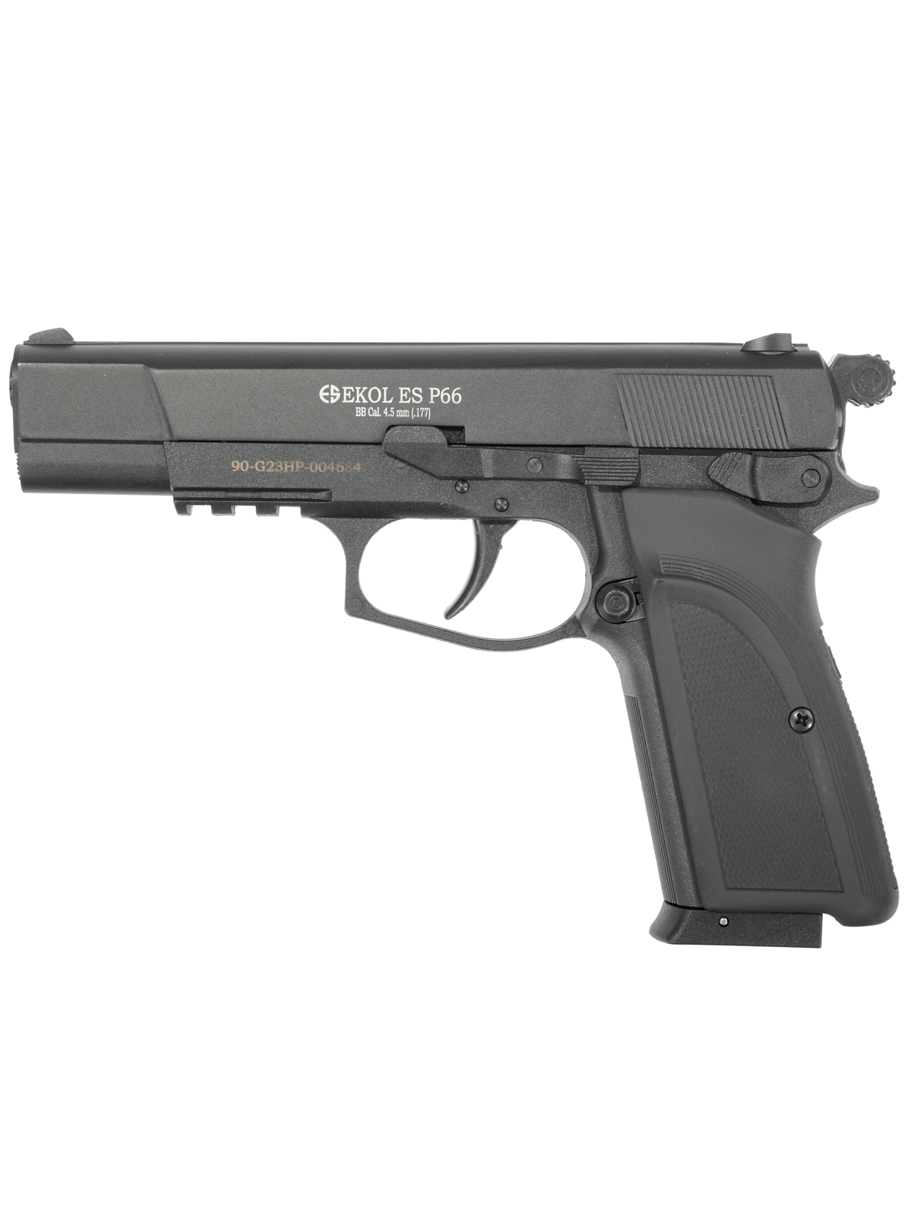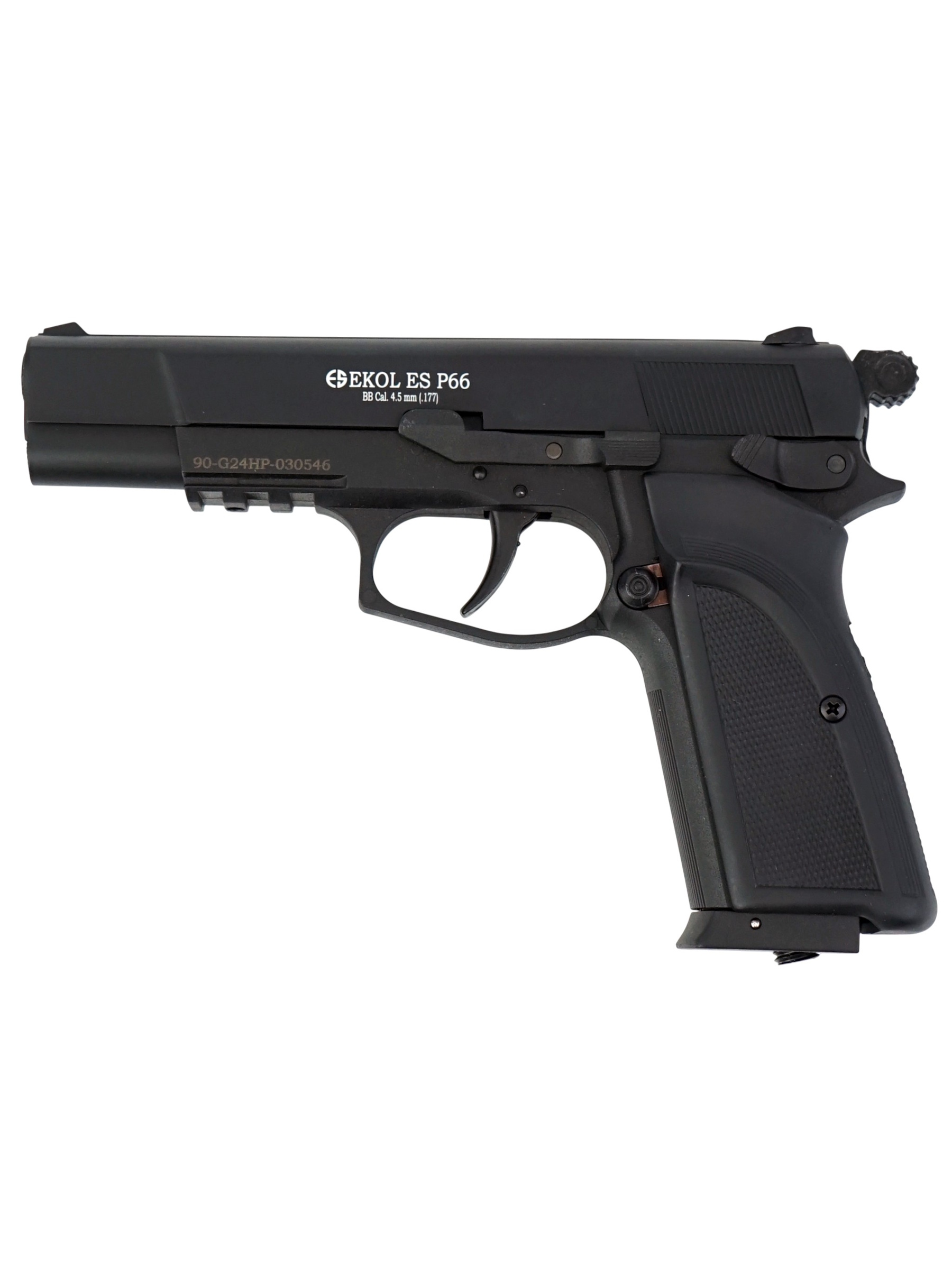 Пневматический пистолет Ekol ES P66 от турецкого производителя Ekol использует в качестве источника энергии 12-граммовые баллончики с углекислым газом.
