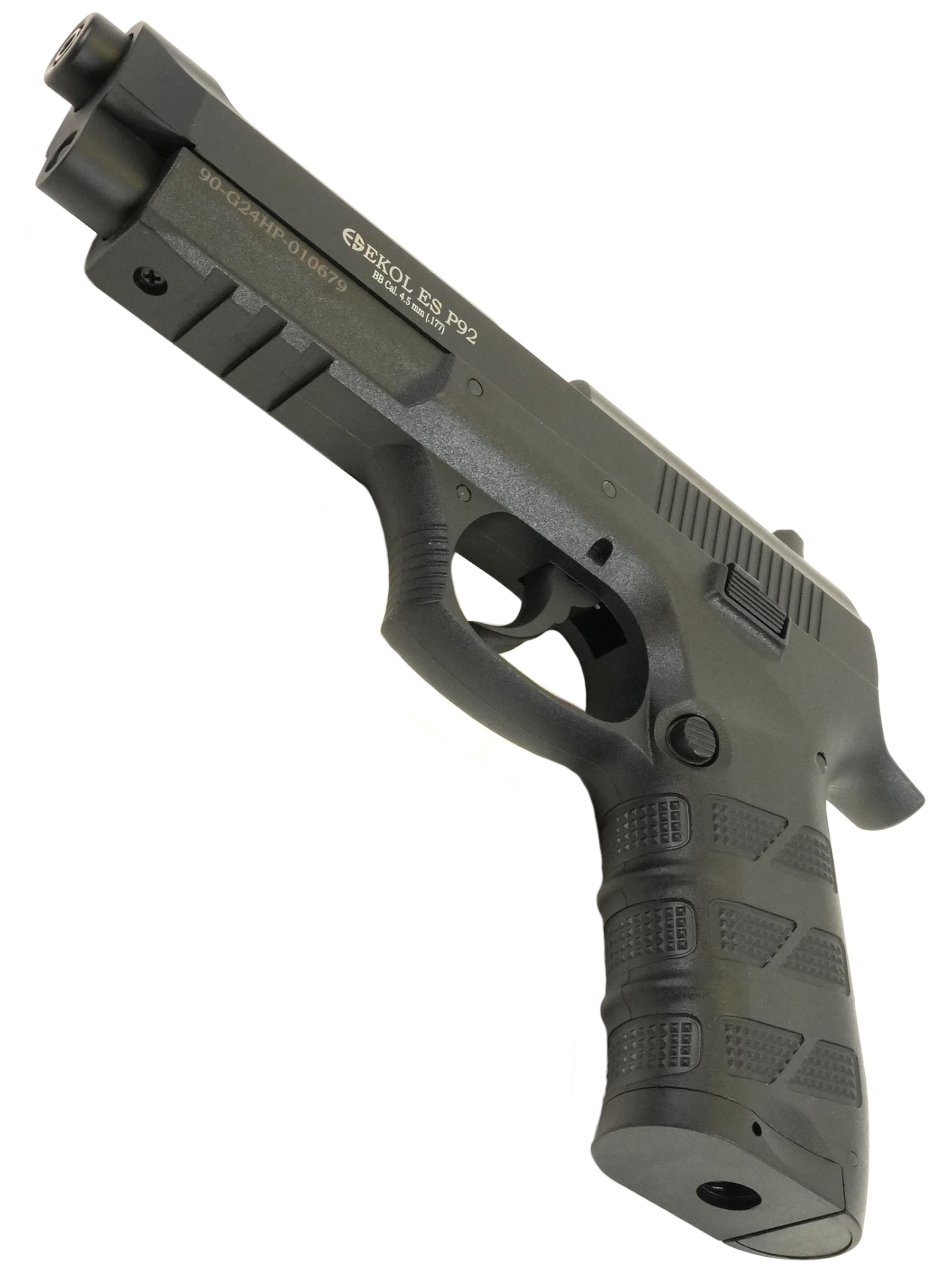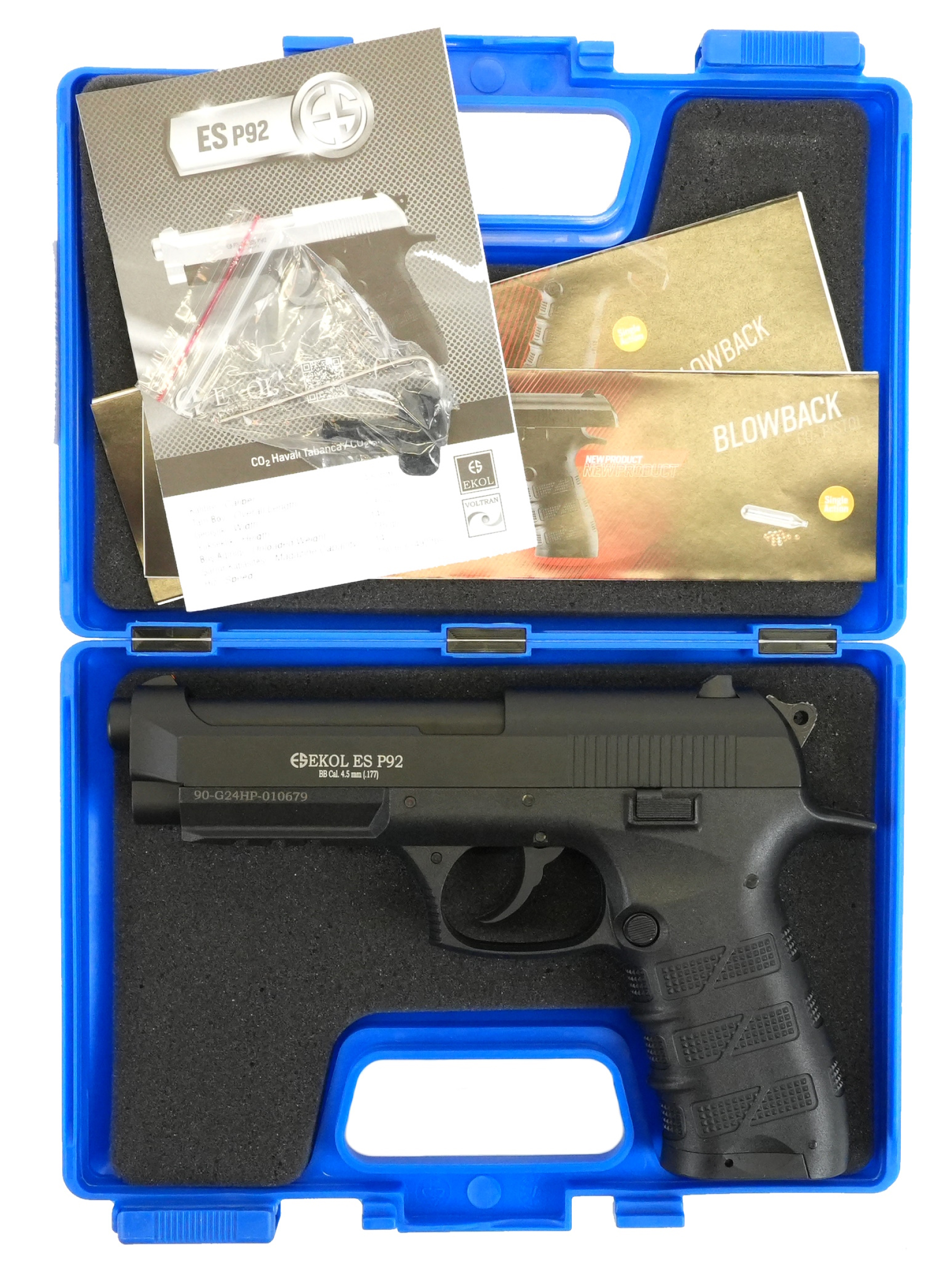 Ekol ES P92 Black обладает достойным рядом технических и стрелковых показателей. Магазин пистолета вмещает в себя 14 шариков BBs калибра 4,5 мм. Для стрельбы необходимо использовать только шарики BBs. Система BlowBack на данной модели пневматического пистолета не предусмотрена. Отсутствие системы имитации отдачи Blowback снижает количество расходуемого газа в баллончике СО2 и позволит осуществить на 30-40% больше выстрелов.