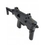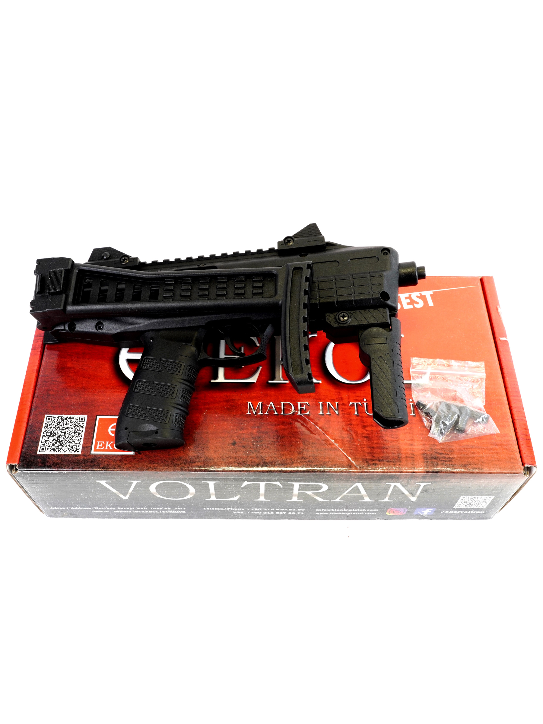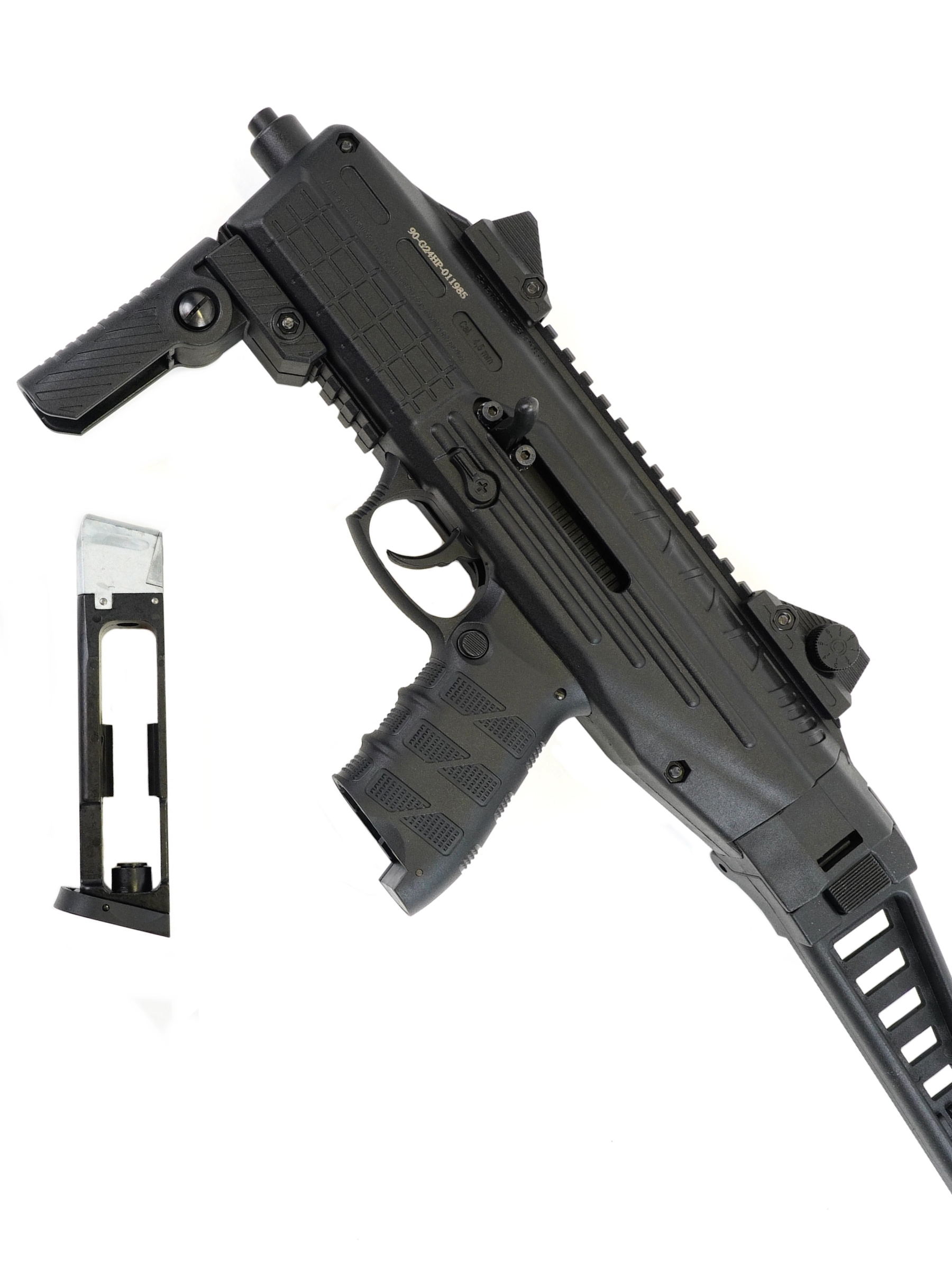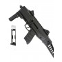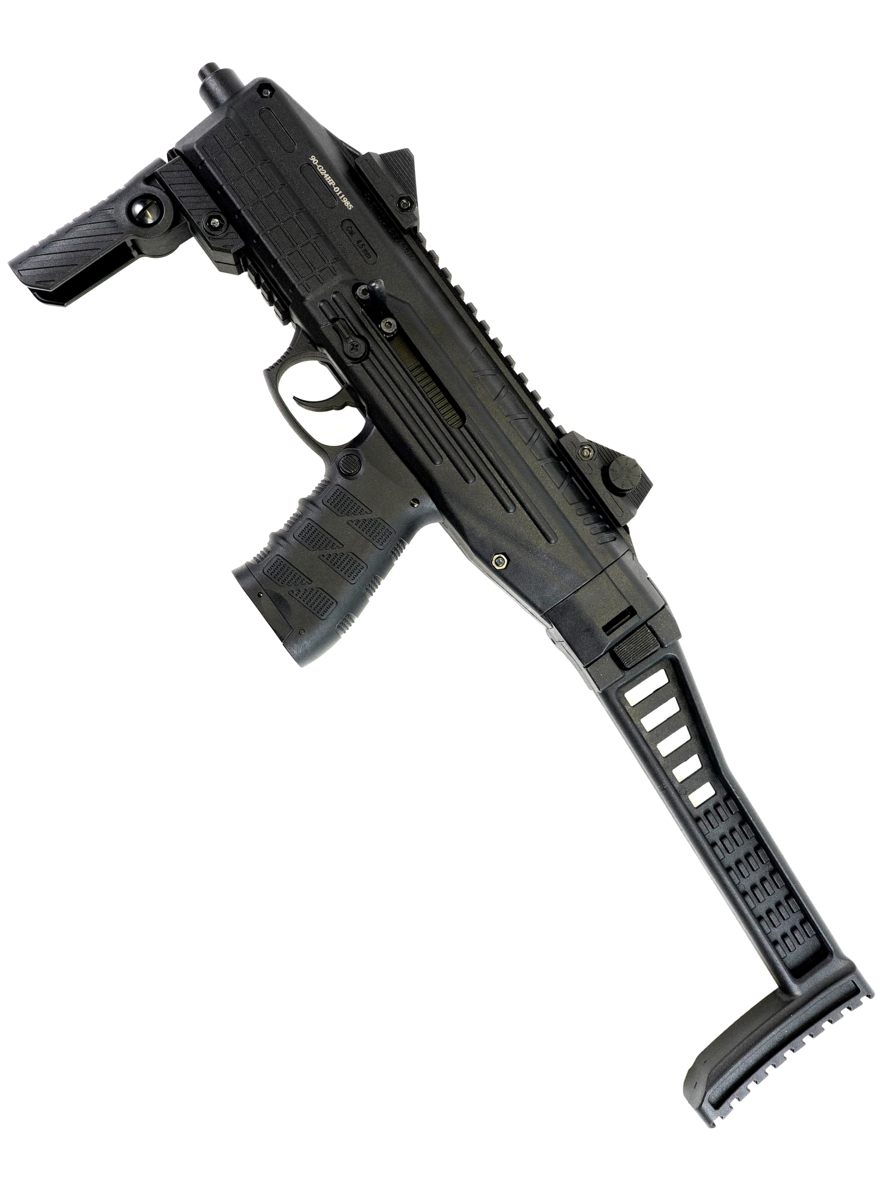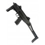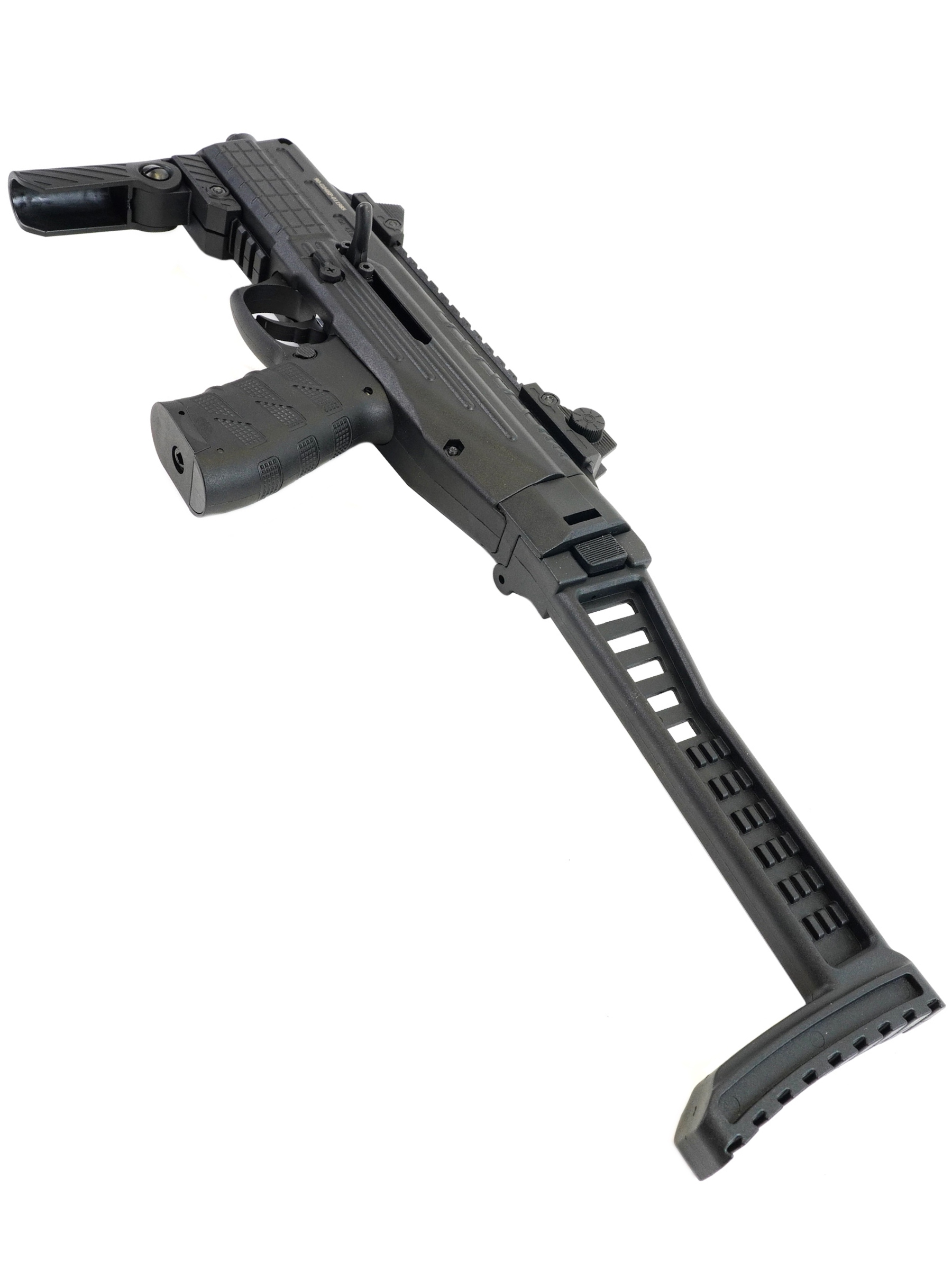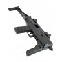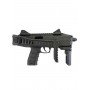 Подствольная планка Пикатинни позволяет устанавливать различные аксессуары, такие как ЛЦУ или фонарик. Кроме того, она штатно оборудована складной тактической рукояткой. Пластиковый приклад пистолета складывается вправо. Полноразмерный магазин вмещает до 14 шариков и имеет специальный отсек для баллончика с углекислым газом.