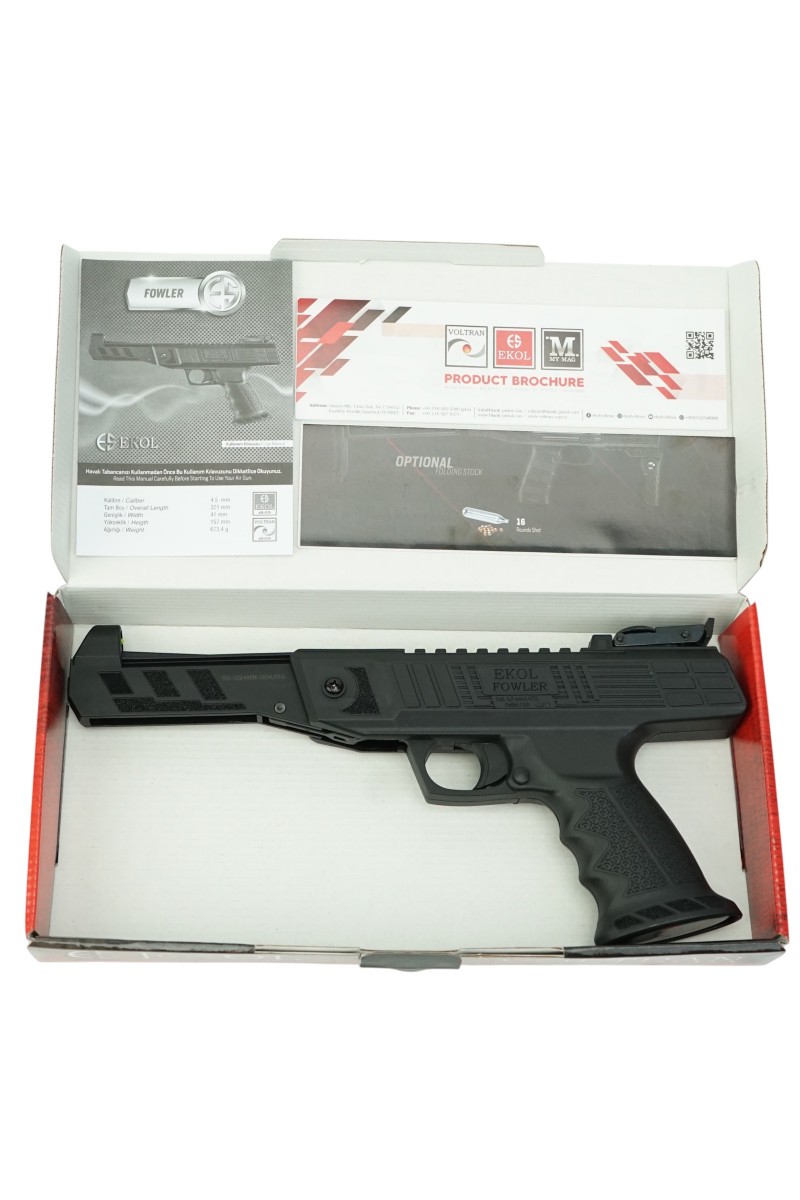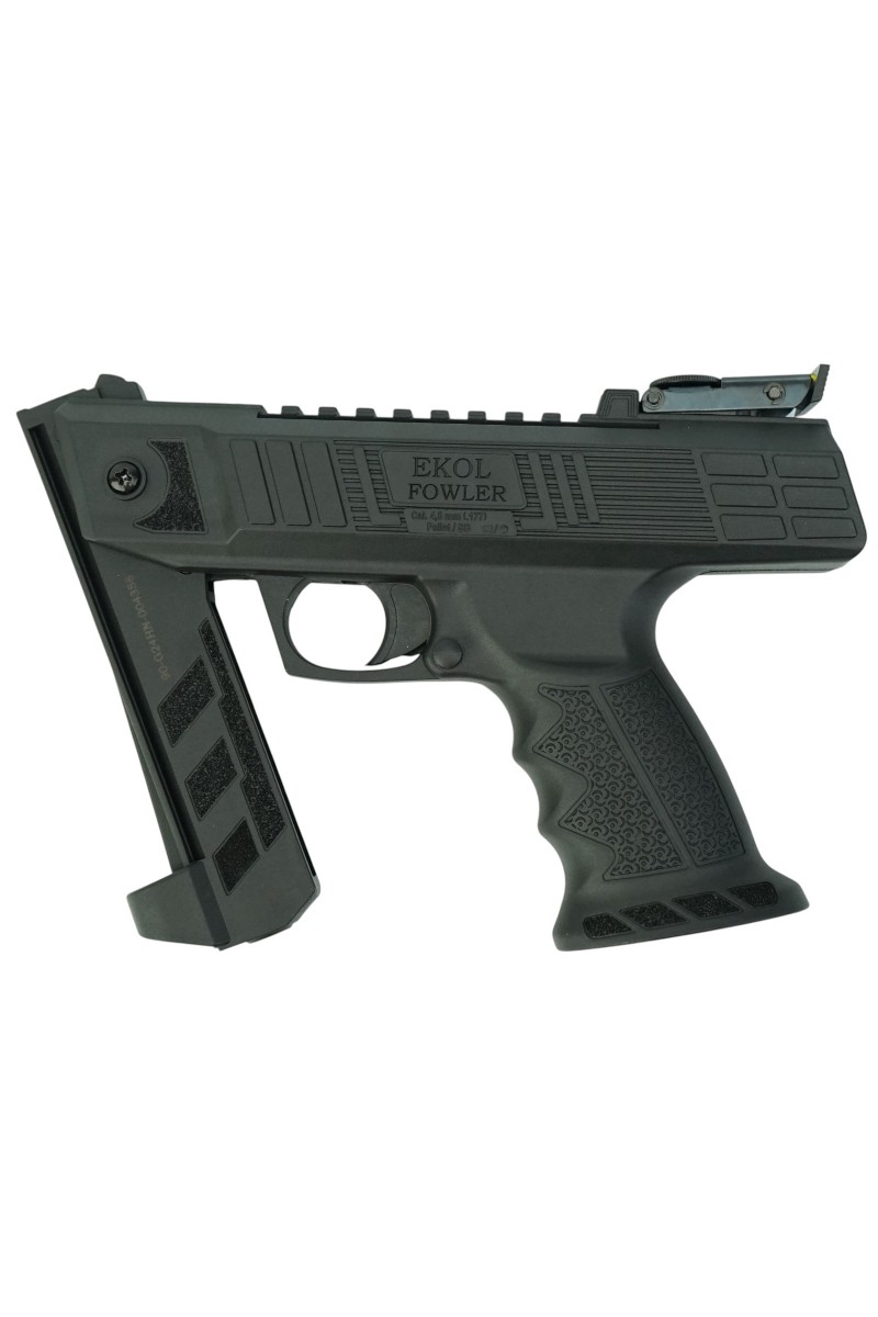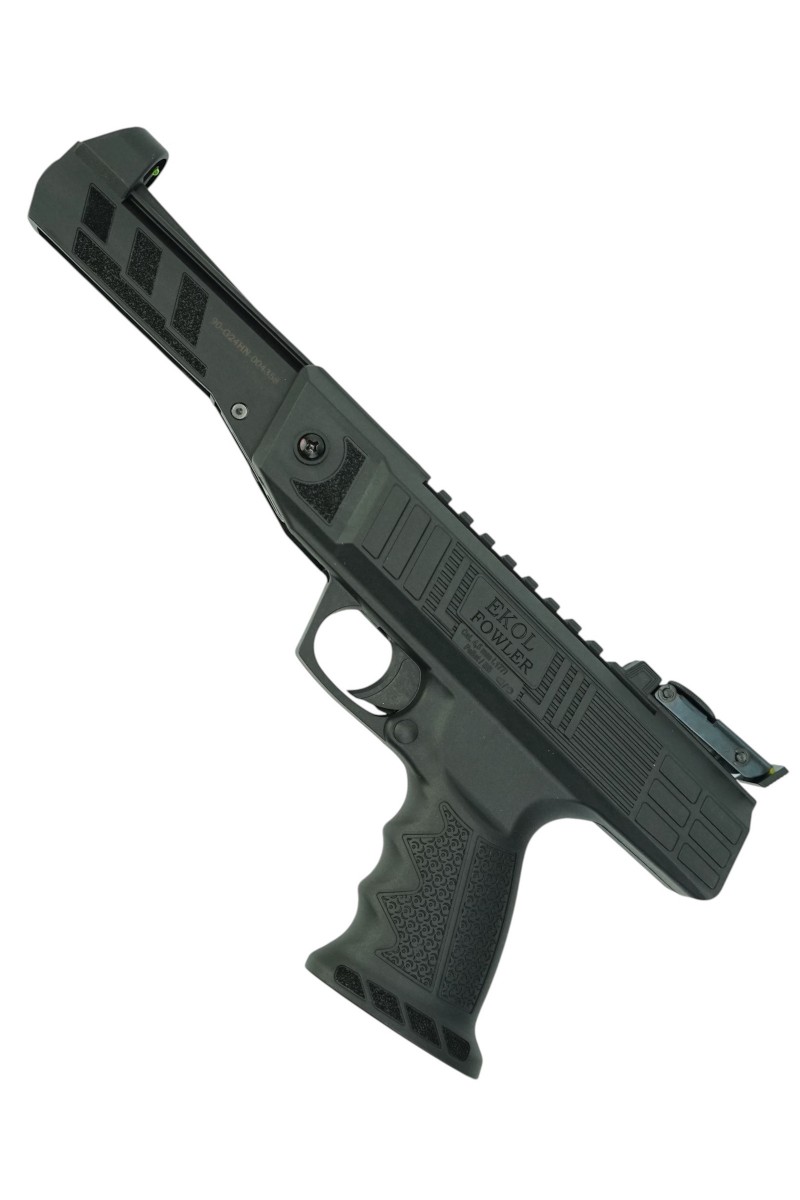 Пневматический пистолет Ekol Fowler от турецкого производителя предназначен для спортивной и развлекательной стрельбы. Особенностью модели является переломный тип заряжания. Ствол нарезной, калибр 4,5 мм. Мощность пистолета ограничена 3 Дж, поэтому для его приобретения не требуется разрешение.